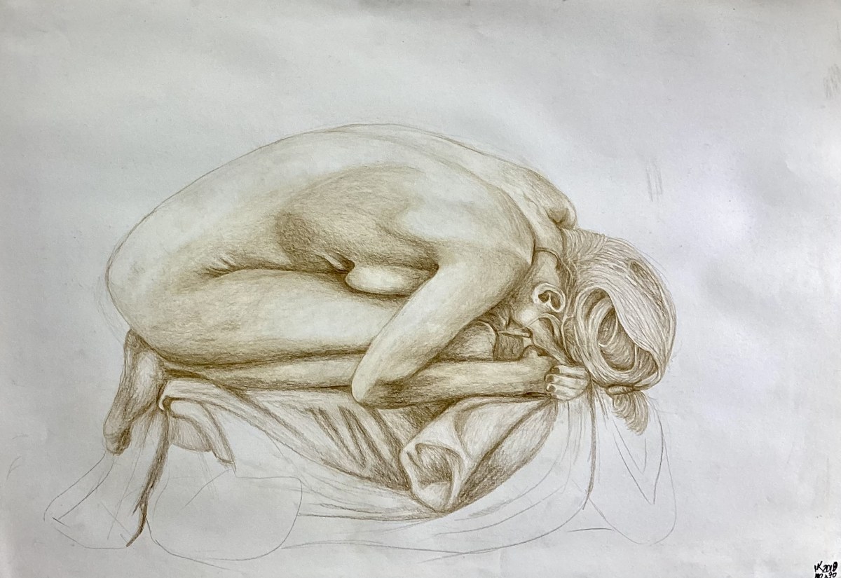kredka, papier kredowy, 70 x 100 cm, sygn. p.d.: M.K.