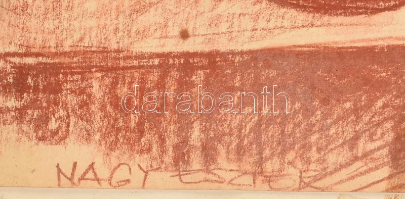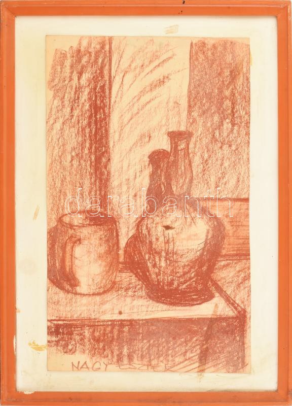 Nagy Eszter jelzéssel: Csendélet. Vöröskréta, papír. Fakeretben, 43×26 cm