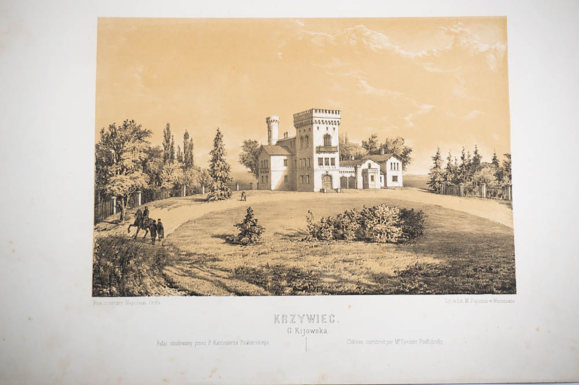 [NAPOLEON ORDA] KRZYWIEC Gubernia Kijowska. Pałac zbudowany przez P. Kazimierza Podhórskiego - rysował z natury Napoleon Orda, w lit. M. Fajansa w Warszawie, f. 44,7 x 31cm, RZADKIE