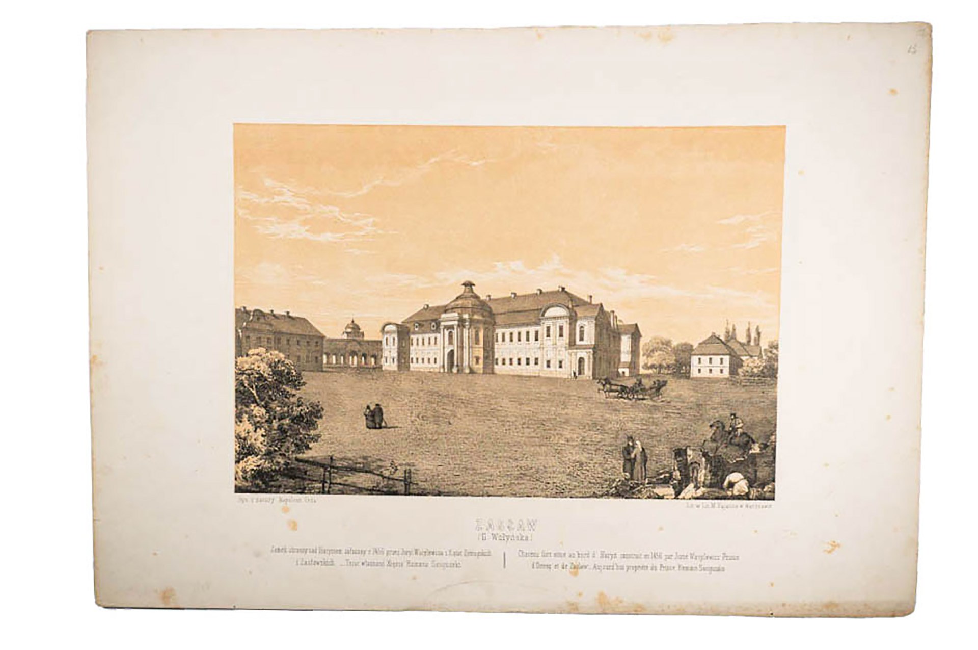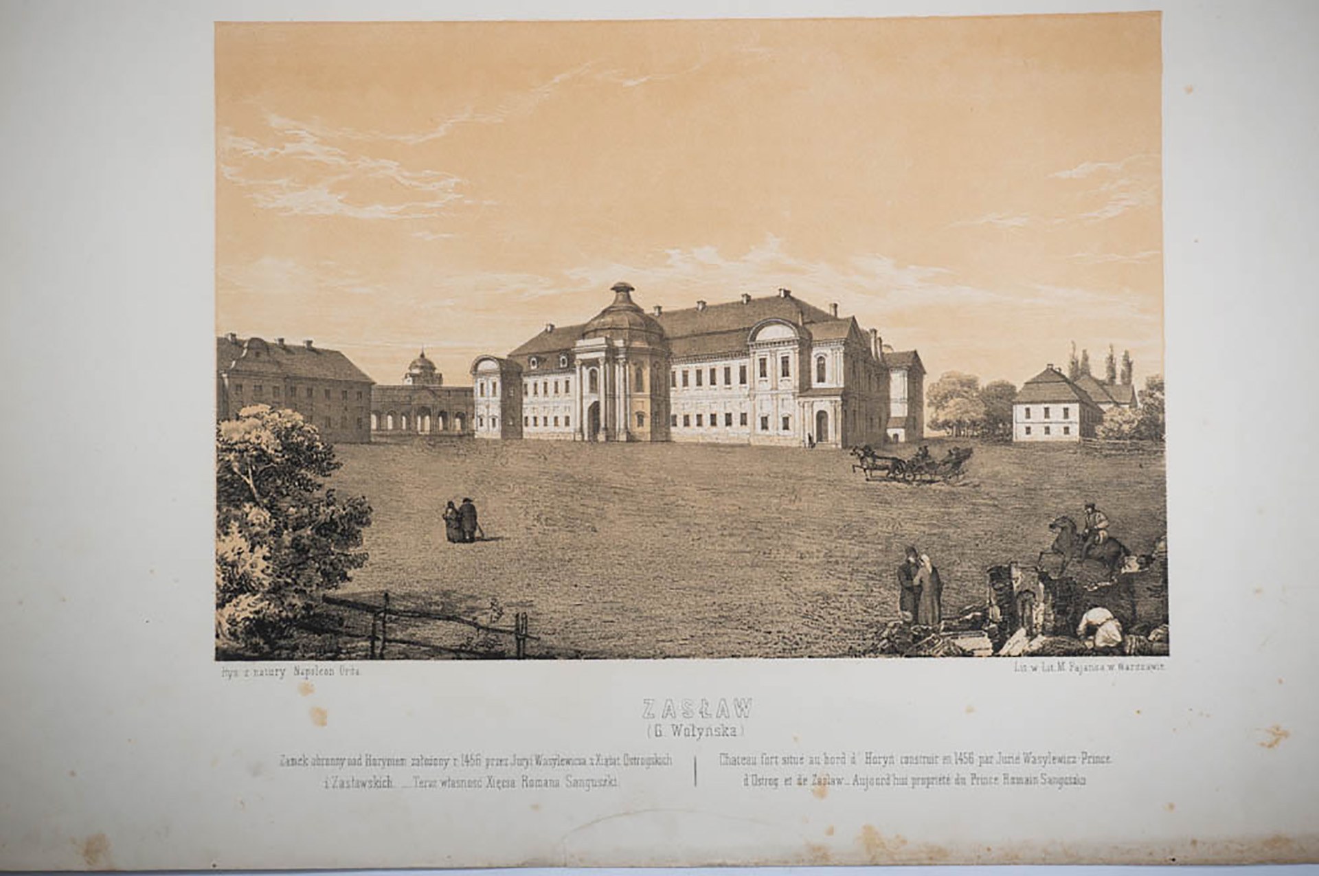 [NAPOLEON ORDA] ZASŁAW Gubernia Wołyńska. Zamek obronny nad Horymem założony r. 1466 przez Juryi Wasylewicza z Xiążąt Czartoryskich i Zasławskich... Teraz własność Xięcia Romana Sanguszki. - rysował z natury Napoleon Orda, w lit. M. Fajansa w Warszawie, f. 44,7 x 31cm, RZADKIE