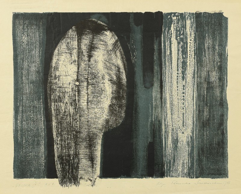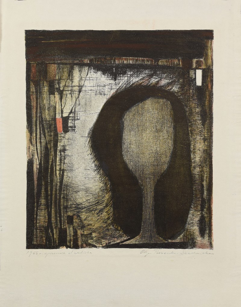 2. Portret bez twarzy, 1966 - litografia, papier; 62 x 49 cm (wymiar arkusza); sygn. p. d.: Olga Peczenko - Srzednicka; data l. d.: 1966 r. epreuve d'artiste (ołówkiem);