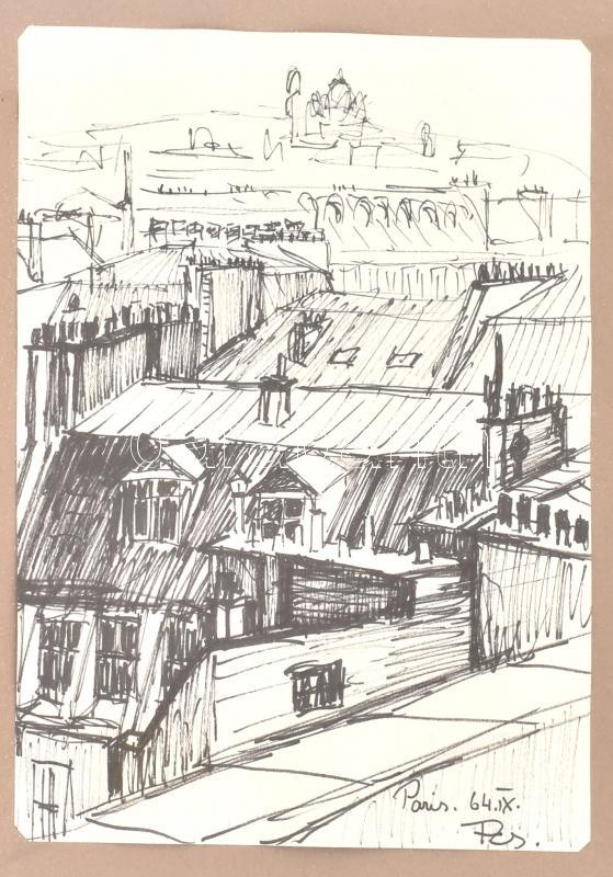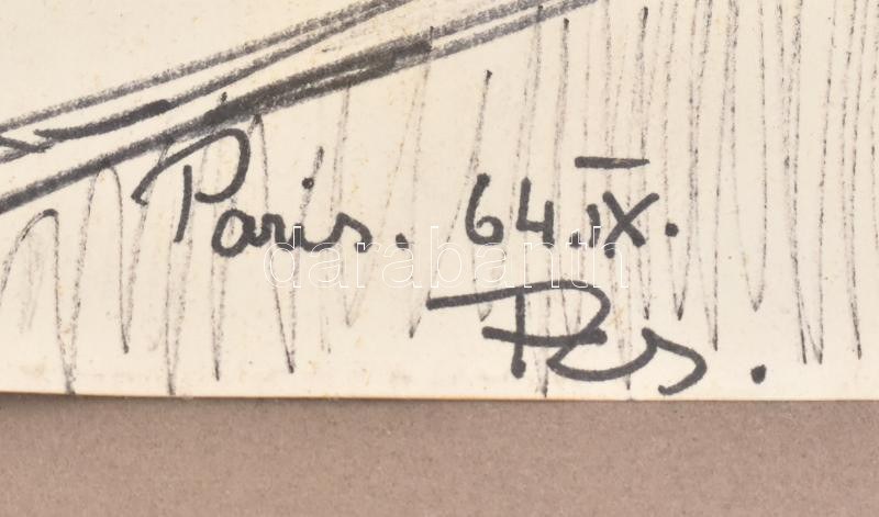 Olvashatatlan jelzéssel (1964): Párizs, filc, papír, üvegezett keretben, 27×20 cm