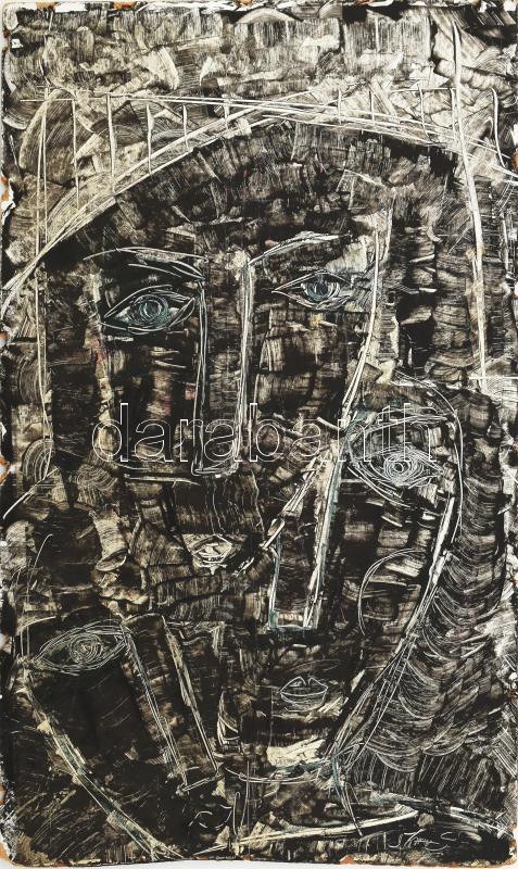 Olvashatatlan jelzéssel: Arcok. Vegyes technika, farost. Kissé sérült. 47x28,5 cm