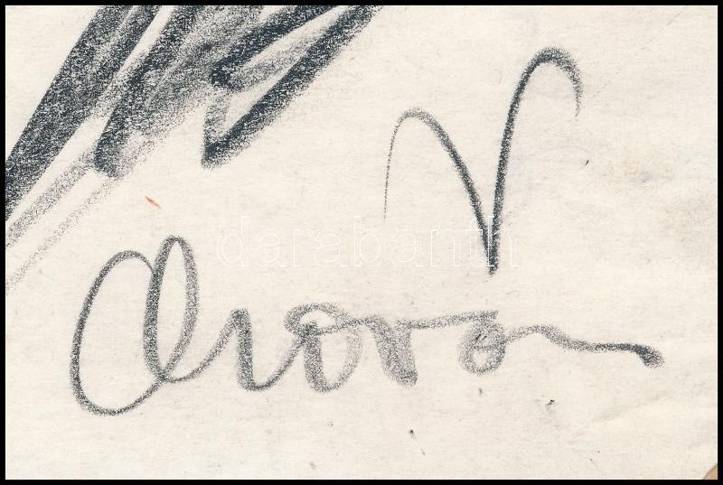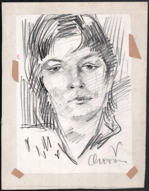 Olvashatatlan jelzéssel (Chovan Lóránt?): Portré. Szén, papír. Kartonra ragasztva. 29x21 cm