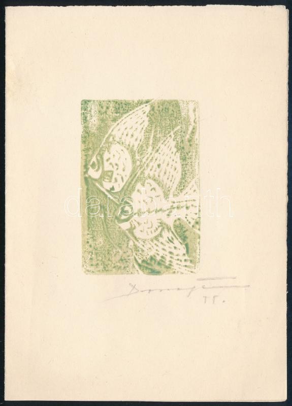Olvashatatlan jelzéssel: Halak bélyeghez, bélyegtervhez vázlat Akvatinta, papír. 6,5x4,5 cm