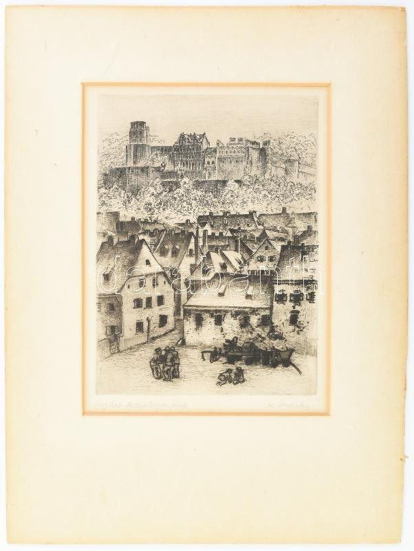 Olvashatatlan jelzéssel: Heidelberg. Rézkarc, papír. Jelzett, 24x18 cm Paszpartuban