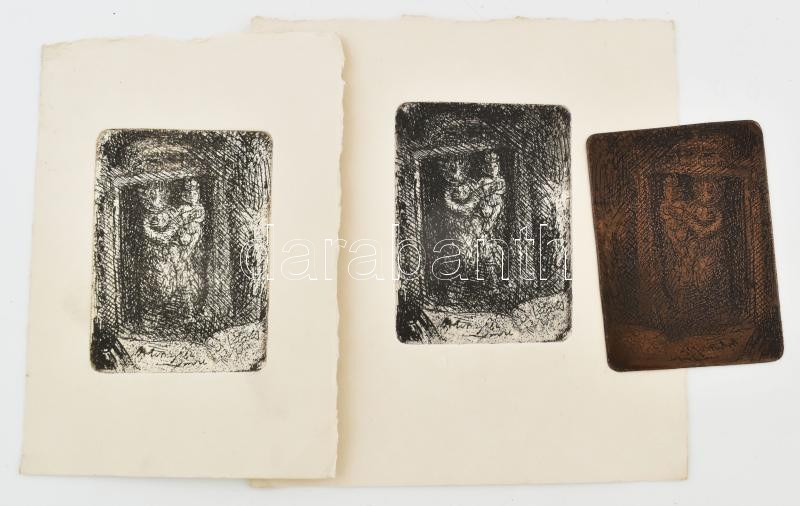 Olvashatatlan jelzéssel (? Imre): Anya gyermekével. Nyomólemez + 2 darab rézkarc, papír, lemezen jelzéssel, 8...