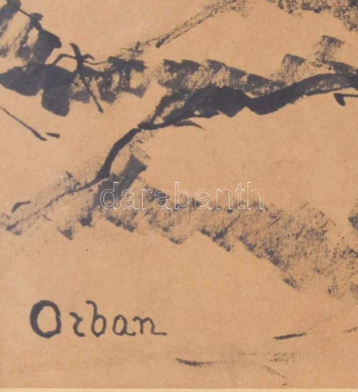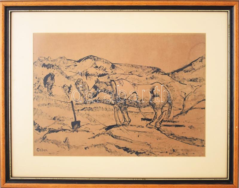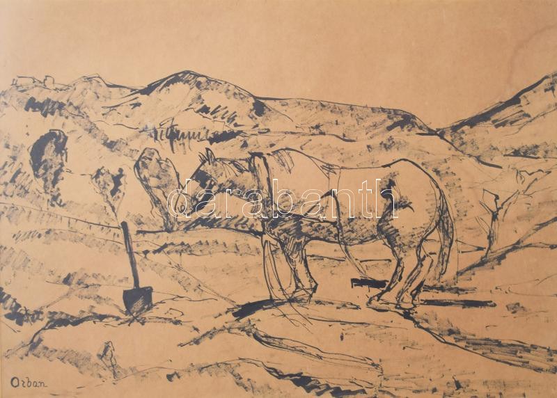 Orbán Dezső (1884-1987): Pihenő ló. Tus, papír, jelezve balra lent. Proveniencia: Forbáth-Fonó-gyűjtemény. Üvegezett fakeretben. 32,5×45 cm.