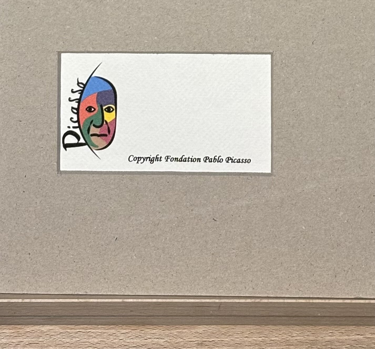 Sygn. na płycie pod kompozycją p. d. "Picasso" oraz ręcznie numerowana ołówkiem „19/200”; l.d.; na odwrocie barwne faksymile rysunku Picassa tzw. główki wraz z sygnaturą oraz informacje o certyfikowanym wydawcy - „Copyright Foundation Pablo Picasso” / wysokość nakładu (200 szt.) / każdy egzemplarz numerowany. Oryginalny certyfikat