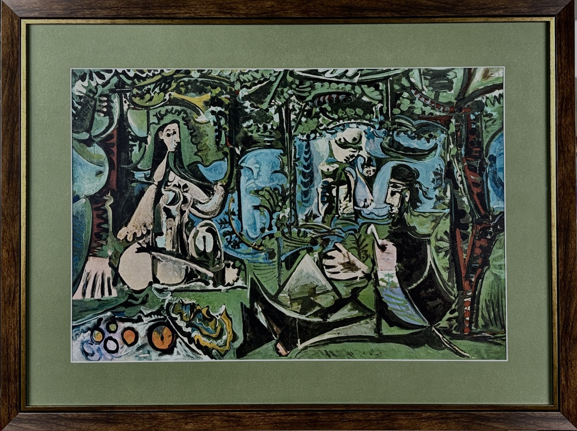 Picasso w swojej seria prac poddaje oryginalne dzieło Maneta radykalnej transformacji, zgodnie z jego postkubistyczną estetyką: zachowuje główny schemat kompozycyjny Maneta: dwie ubrane postaci męskie i naga kobieta na pierwszym planie oraz kolejna postać kobieca w tle, kąpiąca się w strumieniu.