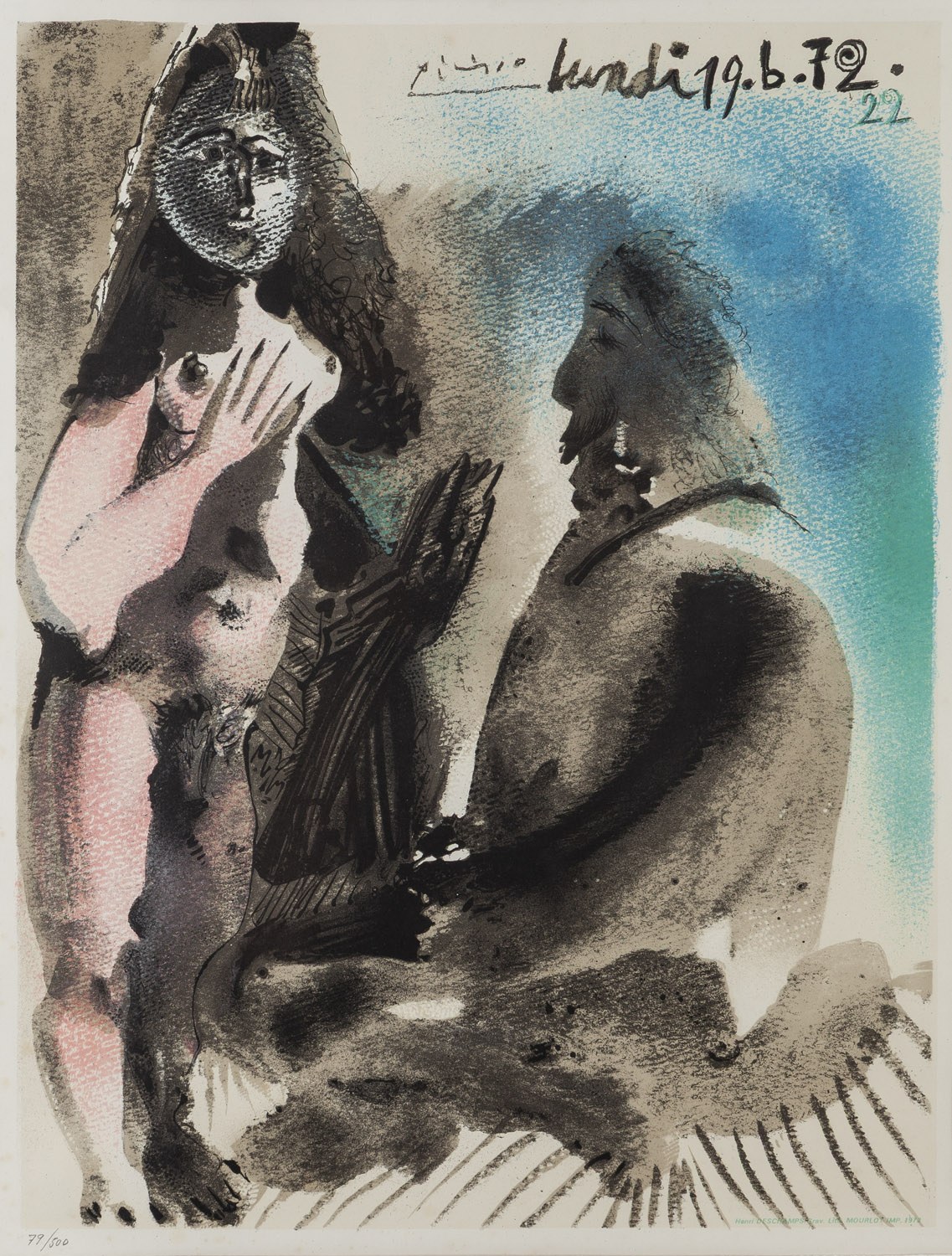 Hiszpański malarz, rzeźbiarz, grafik oraz ceramik, uznawany za jednego z najwybitniejszych artystów XX wieku. On i Georges Braque są twórcami nurtu malarstwa zwanego kubizmem. d najmłodszych lat Pablo ujawniał swój talent malarski i plastyczny. Najpierw kształcił się w Hiszpanii, później w Paryżu (1901-1922), gdzie znaczny wpływ na jego twórczość miało zetknięcie z postimpresjonistami (m.in. Henrim de Toulouse-Lautrekiem, który miał duży wpływ na jego twórczość sprzed 1901 roku). Prace Picassa z lat 1901-1904 określa się jako okres błękitny. Były to dzieła utrzymane w kolorycie melancholijnym, ukazujące tematykę i postaci osób biednych (Życie, Stary gitarzysta, Dwie siostry, Prasowaczka). Jego pracownia mieściła się przy ulicy La Boetie. Od 1904 mieszkał w Bateau-Lavoir przy ulicy Ravignan 13. Po tym okresie twórczość Picassa weszła w okres różowy, między innymi sceny z życia cyrkowców (Dziewczyna na kuli, Kuglarze, Toaleta, Rodzina arlekina). Od 1907 Picasso pod wpływem Paula Cézanne’a oraz sztuki iberyjskiej i afrykańskiej rozpoczął twórcze eksperymenty z geometryzacją i uproszczeniem formy, które dały początek kubizmowi (Panny z Awinionu, Portret Gertrudy Stein). W dalszym okresie po współpracy z Georgesem Brakiem skrystalizowały się zasady kubizmu analitycznego, hermetycznego i syntetycznego. Za manifest kubizmu uważana była premiera utworu scenicznego Parady do libretta Jean Cocteau, do którego muzykę napisał Erik Satie, a scenografię zaprojektował Picasso. Wystawiony został w 1917 przez „Balety Rosyjskie” Siergieja Diagilewa. Następne lata charakteryzowały ciągłe poszukiwania twórcze. Gdy wybuchła wojna domowa w Hiszpanii, opowiedział się po stronie republikańskiej, a w 1937 na zamówienie republikańskiego rządu Hiszpanii za 200 tys. peset namalował słynną Guernicę, obraz wystawiony w Pawilonie Hiszpanii na Wystawie Światowej w Paryżu. Okres II wojny światowej spędził w Paryżu, w 1944 wstąpił do Francuskiej Partii Komunistycznej, a po wojnie zaangażował się po stronie ruchów lewicowych i pokojowych. W 1946 wyjechał na Lazurowe Wybrzeże. W 1948 zamieszkał w Vallauris. W 1948 Picasso przyjechał do Polski, wziął udział w Światowym Kongresie Intelektualistów w Obronie Pokoju we Wrocławiu, a także odwiedził Warszawę, gdzie podarował Muzeum Narodowemu swoją kolekcję ceramiki, rysunków i barwnych druków. Sygnatariusz apelu sztokholmskiego w 1950 roku. W 1950 roku otrzymał Międzynarodową Leninowską Nagrodę Pokoju (zwaną wówczas Nagrodą Stalinowską)[3]. W latach 40. malował obrazy antywojenne (Masakra w Korei, Wojna, Pokój). Okres twórczości powojennej Picassa jest bardzo bogaty, różnorodny i nie poddający się klasyfikacji.