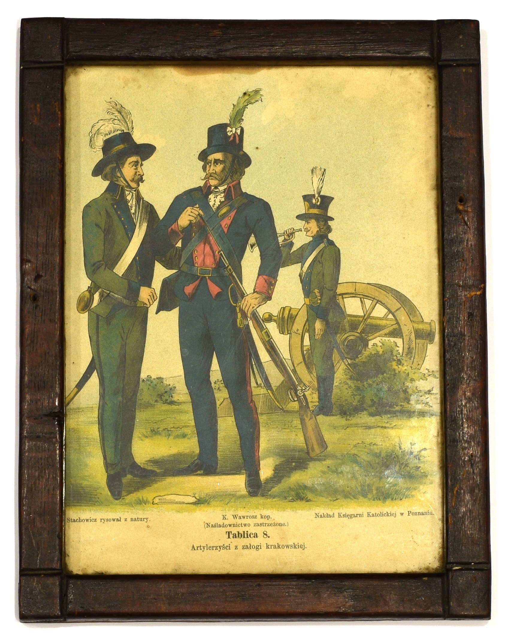 Barwna litografia przedstawiająca Artylerzystów z załogi krakowskiej.