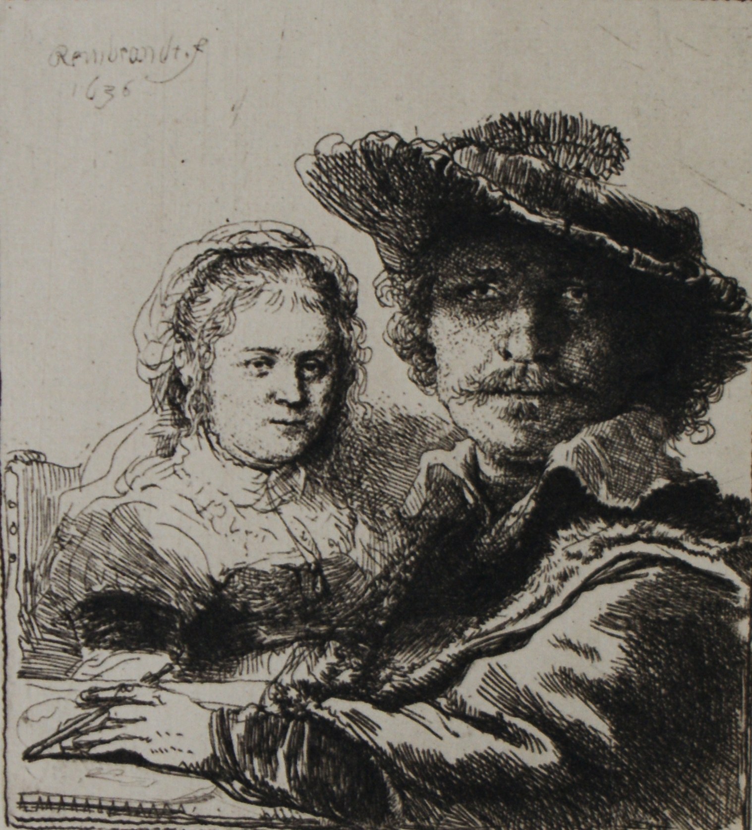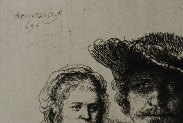 Miedzioryt na ręcznie czerpanym Van Gelder Zonen Papierze z Amsterdamu ,sygn.i dat w druku:"Rembrandt 1636", 10 x 9 cm w św.p-p