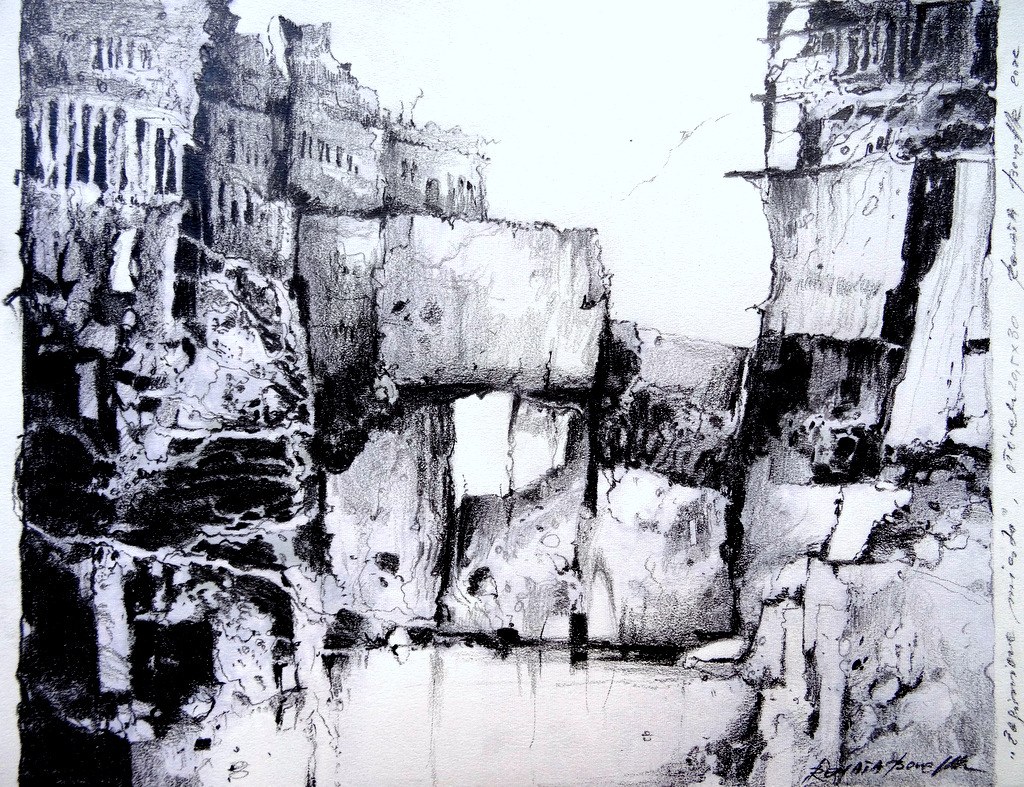 Renata Bonczar, Zaginione miasto, ołówek na papierze, 20,2 x 30 cm