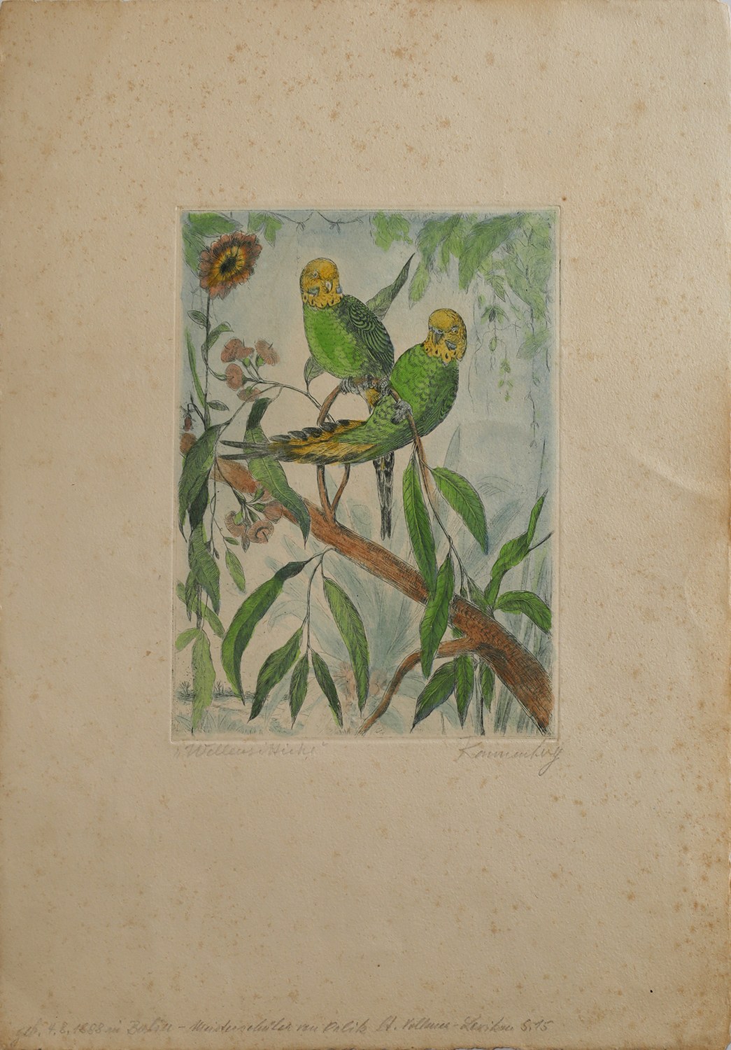 Dobrej klasy praca mało rozpoznanego artysty. Jego dzieła są w śladowych ilościach na rynku a ta grafika od 2000 nie była na aukcjach w RFN. Na marginesie stara notatka informująca o dacie urodzenia artysty oraz o tym że był na studiach w klasie słynnego artysty prof. Emila Orlika. Rzadkie.