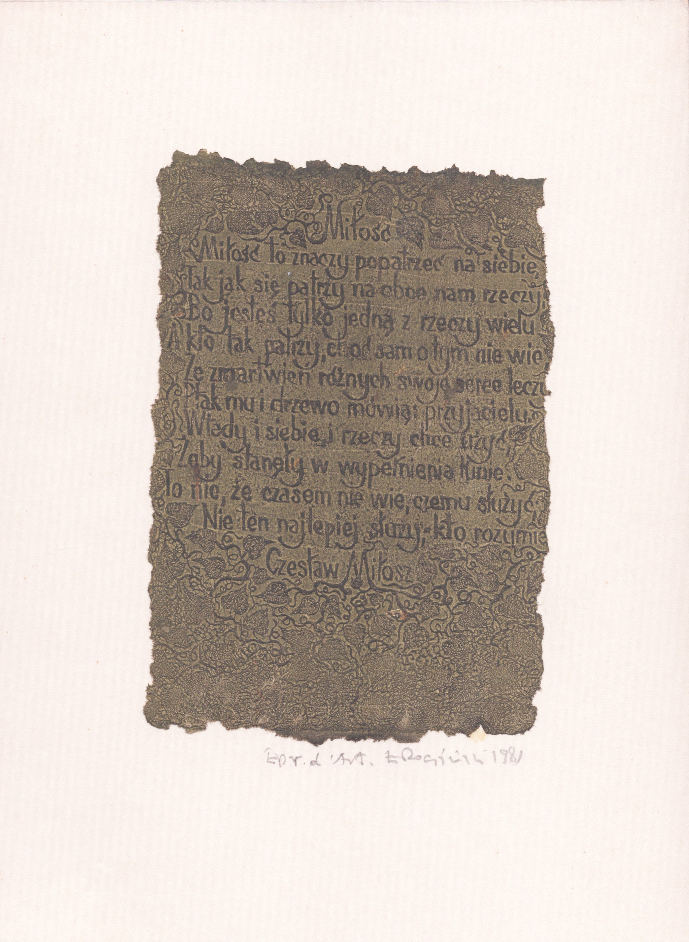 ROGIŃSKI Łukasz - Dwie akwaforty do wierszy Czesława Miłosza "Wiara" oraz "Miłość" [1981]