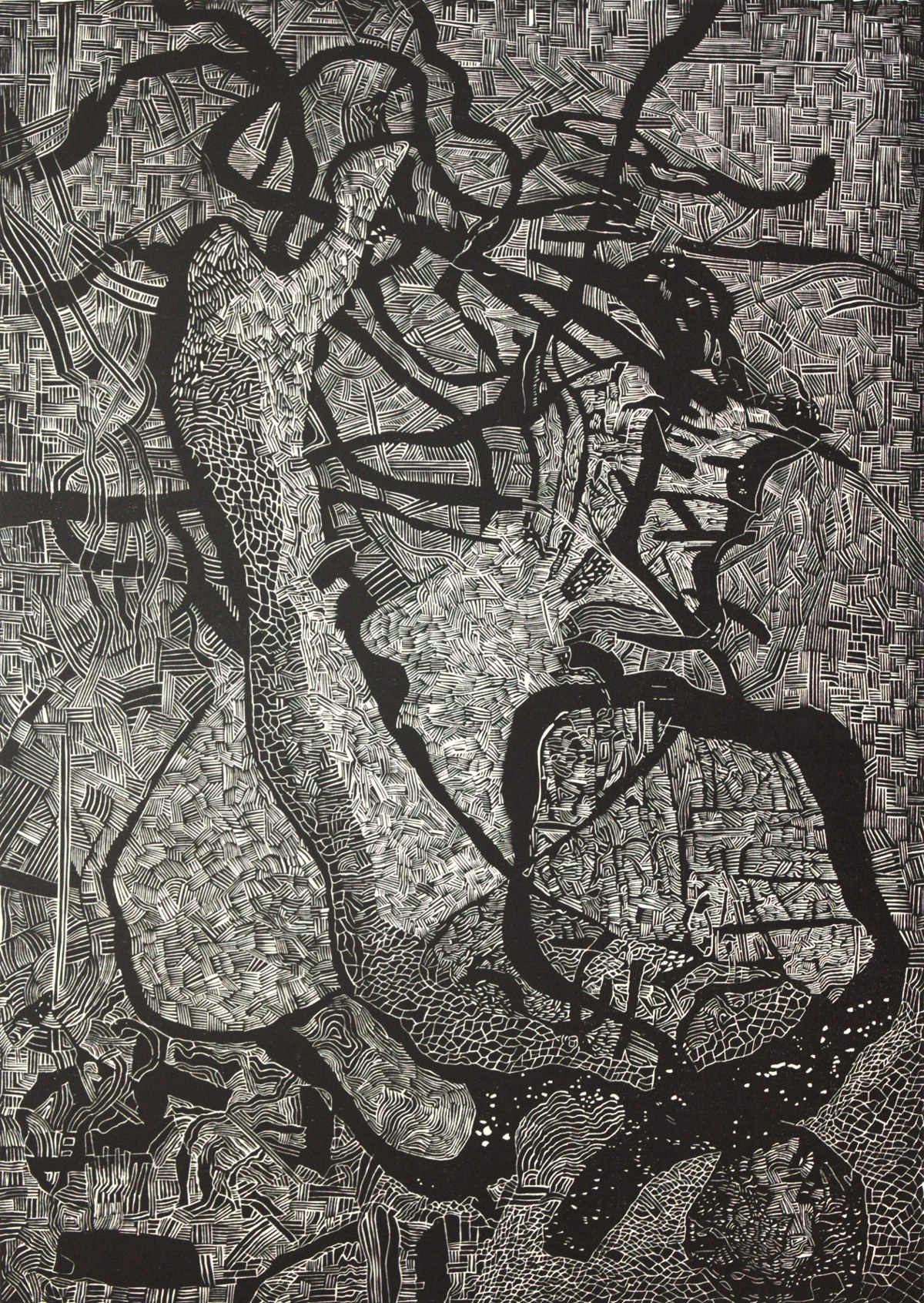 linoryt, papier, 100 x 70 cm, sygn. u dołu