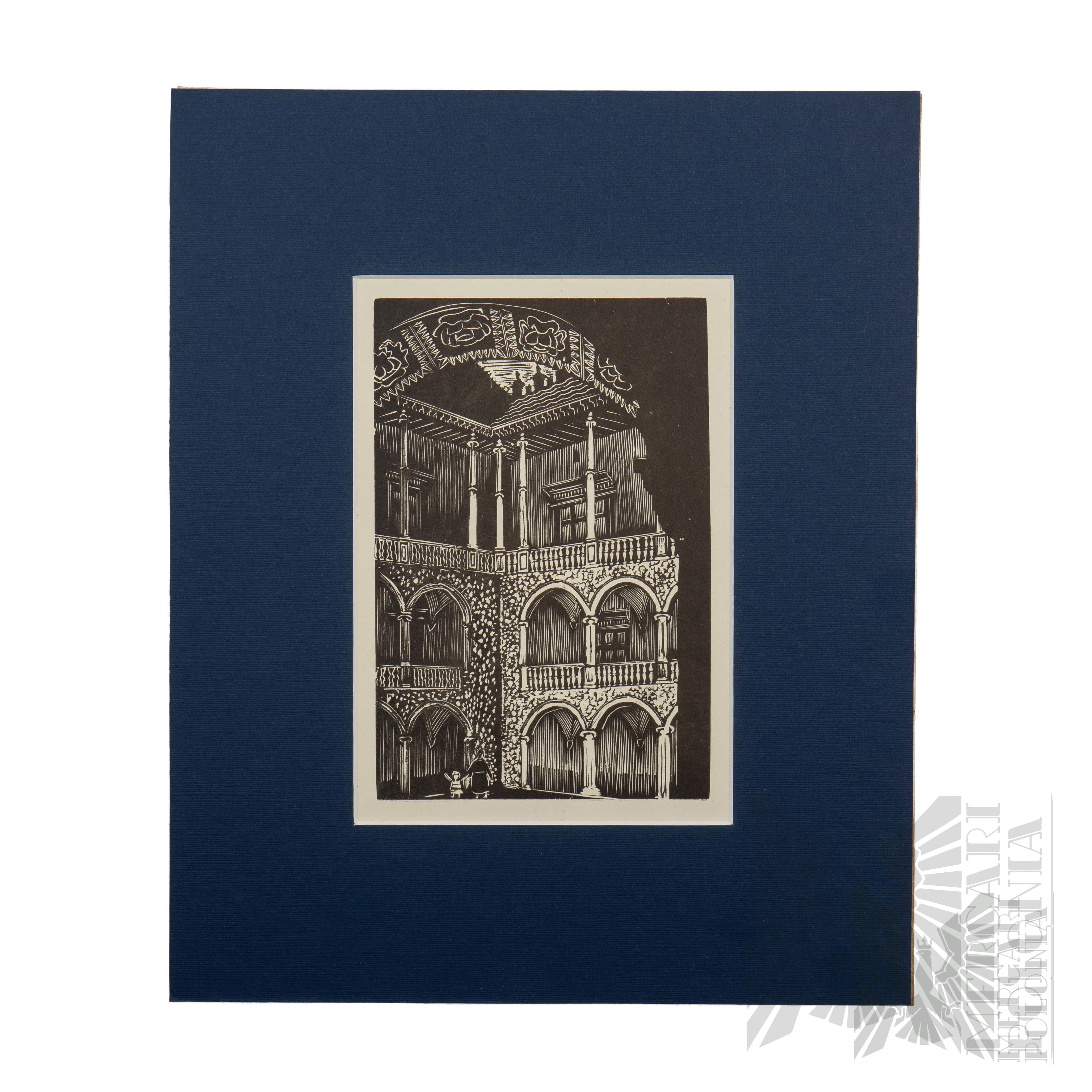 Drzeworyty, papier; 16 x 11 cm (w świetle passe-partout).