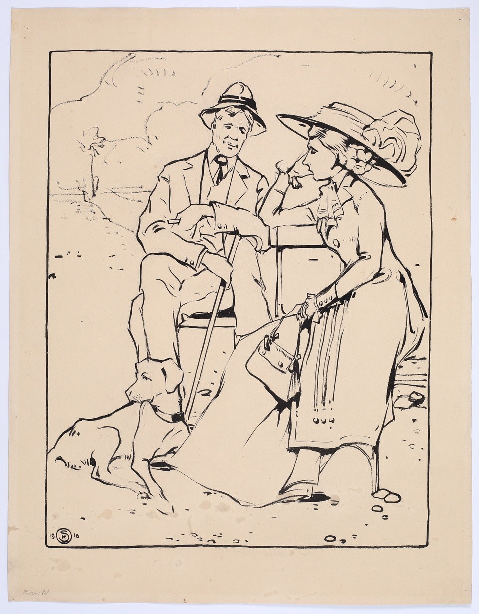 Rysunek tuszem na podrysowaniu ołówkiem, papier. Sygn. monogr. w l. d.: „KS” (w kółku) oraz dat. „19 | 10”. Wym. komp. 31 x 40,7 cm, arkusza: 37,5 x 48,7 cm. Stan dobry, drobne ślady zaplamienia u dołu. Praca opis. oł. w l.d. rogu „Nr inw 28”.