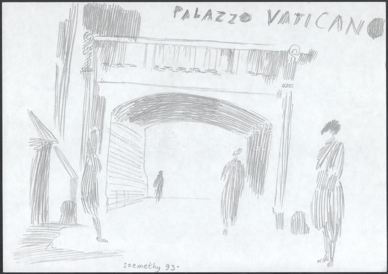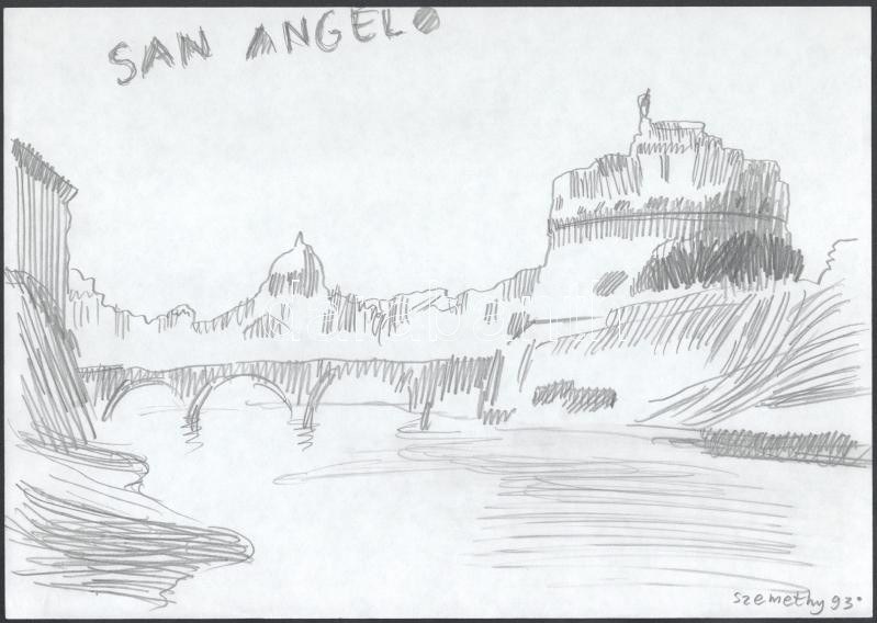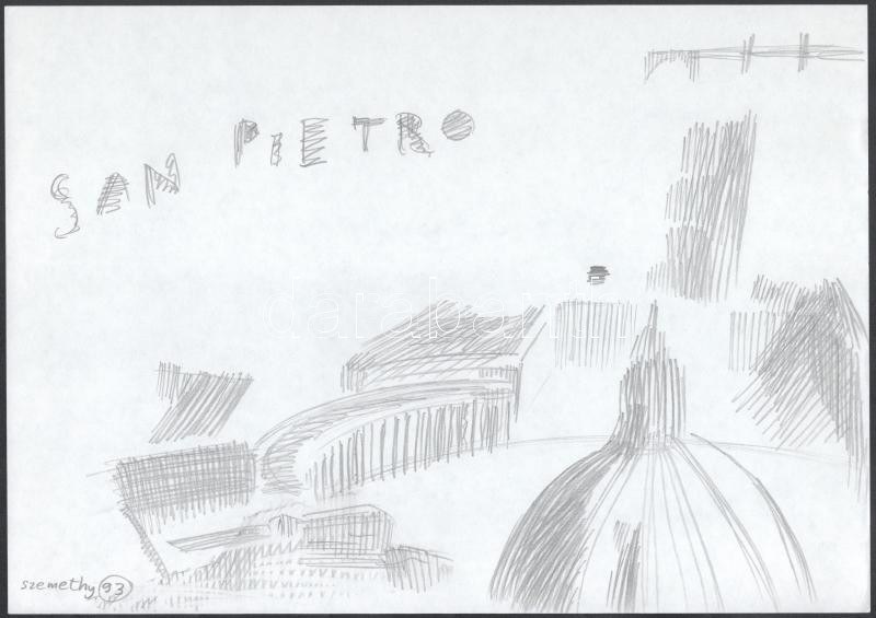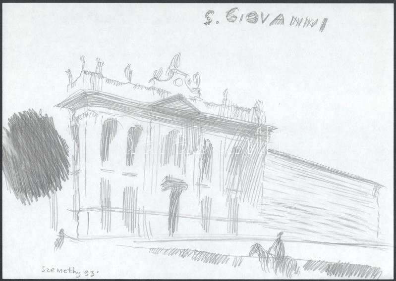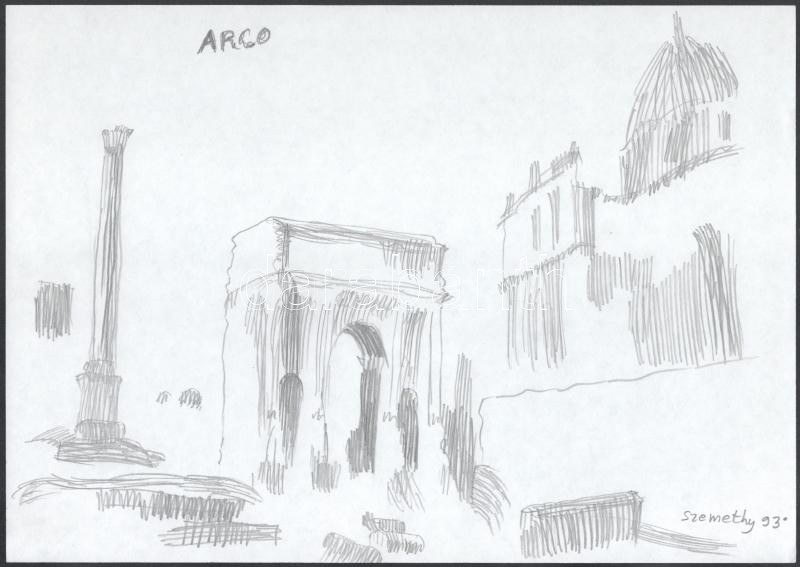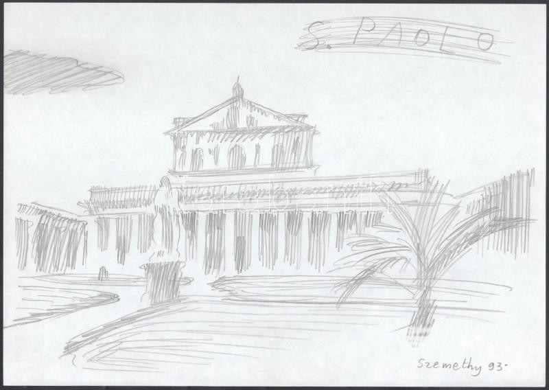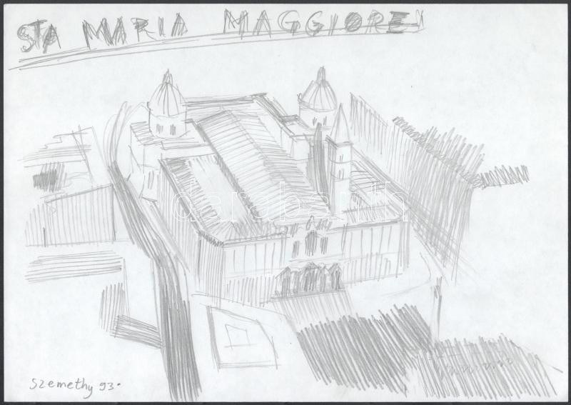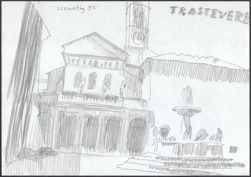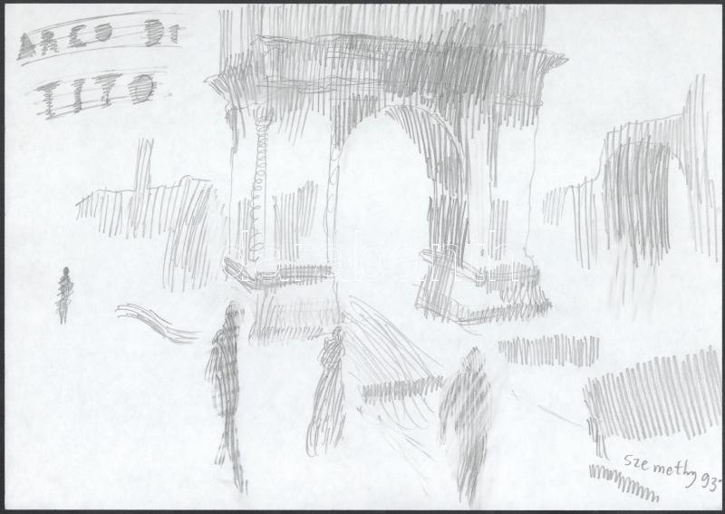 Szemethy Imre (1945-): Római egységcsomag, 41 db rajz római épületekről, helyszínekről, 1993. Ceruza, papír...