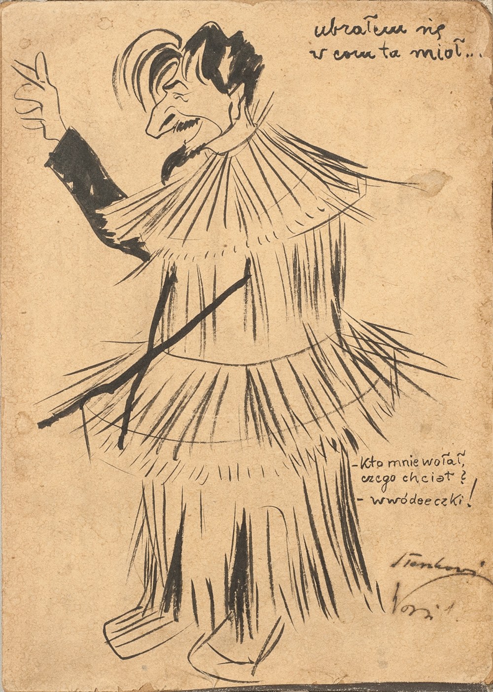 rysunek tuszem dedykowany Stanisławowi Wyspiańskiemu