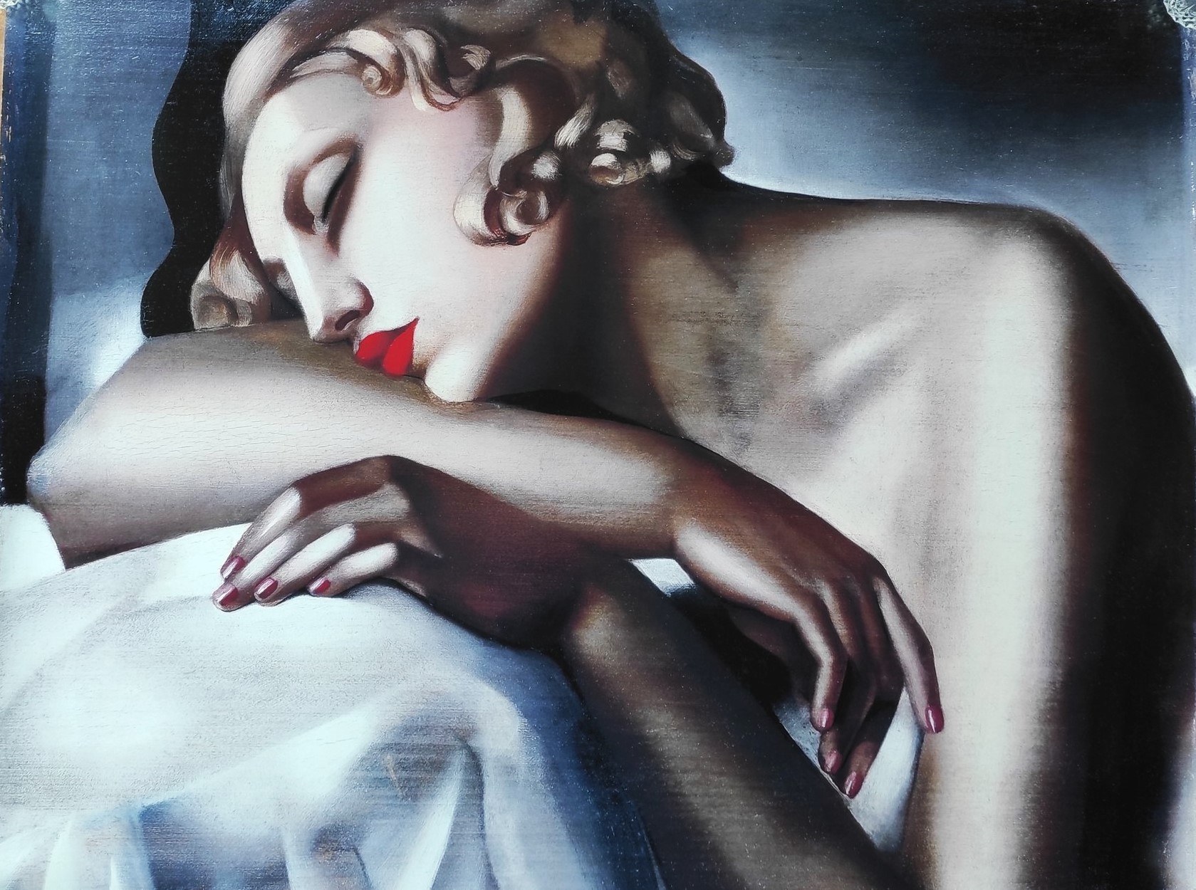 Tamara de Łempicka (1898–1980) była urodzoną w Polsce malarką, znaną z charakterystycznego stylu Art Deco, który łączył elementy kubizmu i neoklasycyzmu z nowoczesną wrażliwością. Zyskała rozgłos w latach dwudziestych i trzydziestych XX wieku, szczególnie w Paryżu, gdzie stała się częścią kręgów bohemy i arystokracji. Prace Łempickiej charakteryzują eleganckie linie, odważne formy oraz skupienie się na przepychu, luksusie i zmysłowości, co czyni ją jedną z najbardziej ikonicznych artystek ruchu Art Deco.