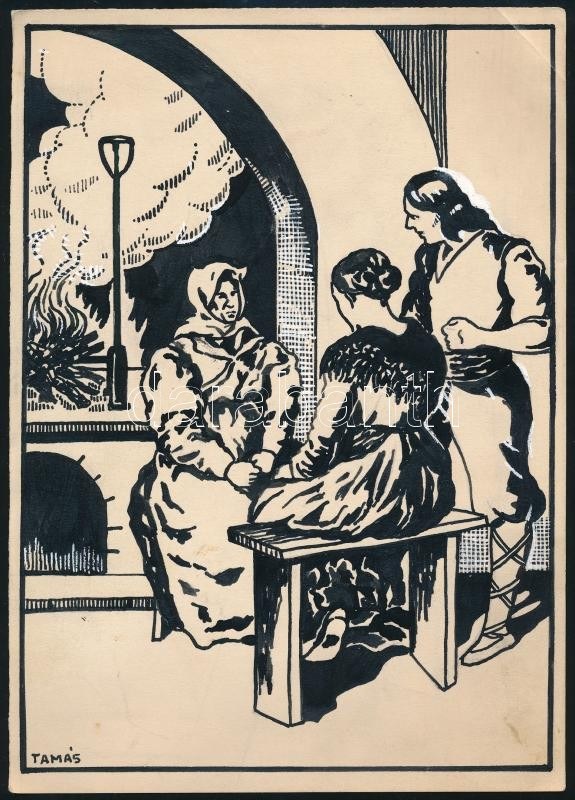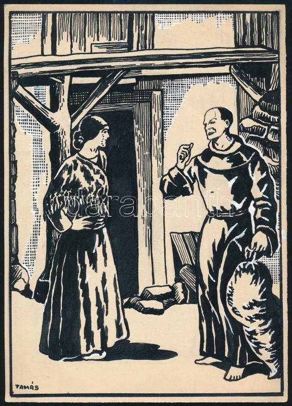 Tamás jelzéssel: Manzoni: Jegyesek c. mukájához készült 4 db illusztráció. Tus, vegyes technika. 22x16 cm