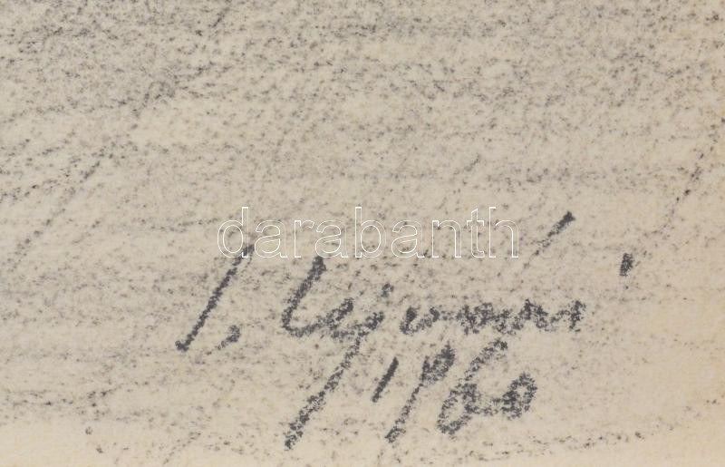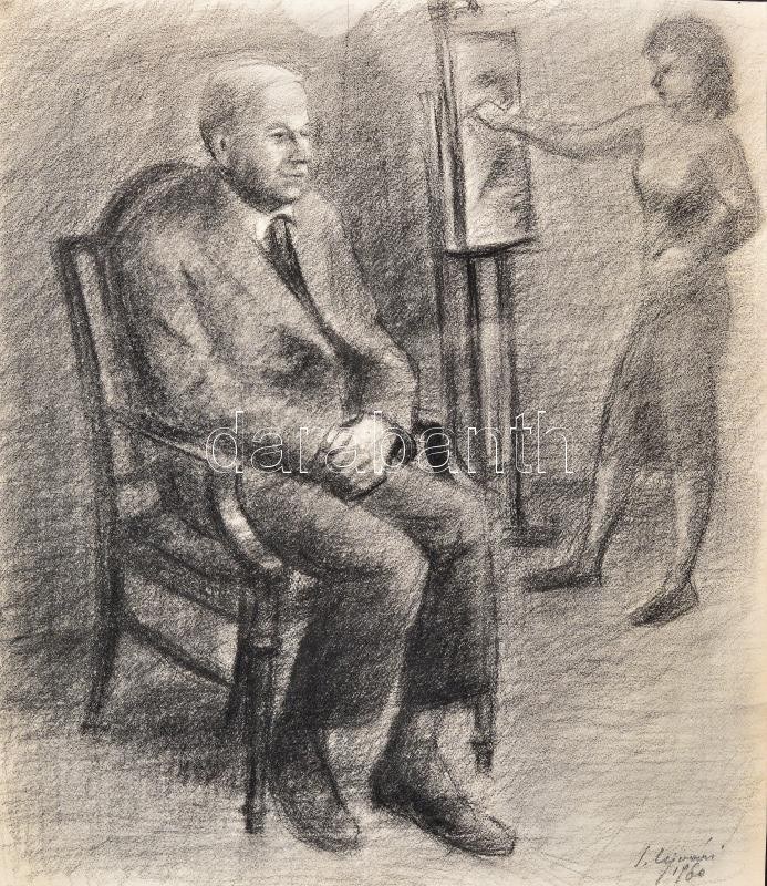 Ujváry Lajos (1925-2006): Műteremben. Szén, papír, jelzett. 47,5x41,5 cm