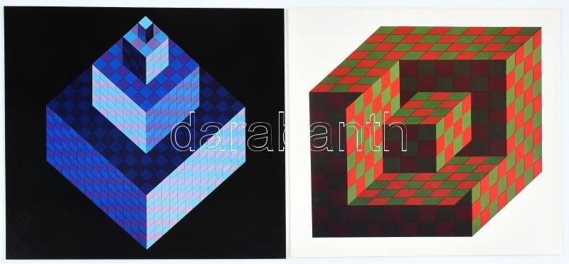 Vasarely Victor (1908-1997): Structurelles universelles de l'hexagone, mappa. 8 db heliogravűr, papír, mindegyik külön lapon. Neuchatel, 1975, Éditions du Griffon. Eredeti, kiadói mappában. Lapméret: 27x27 cm. Komplett, hiánytalan! / Victor Vasarely (1908-1997): Structurelles universelles de l'hexagone. Photogravure on paper, 8 pcs. Neuchatel, 1975, Éditions du Griffon. 27x27 cm The album is complete!