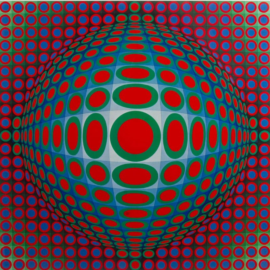 Litografia barwna na papierze, opisana i datowana na kamieniu l.d.: “Vega 222” - 1970, sygnowana p.d.: “Vasarely”.
