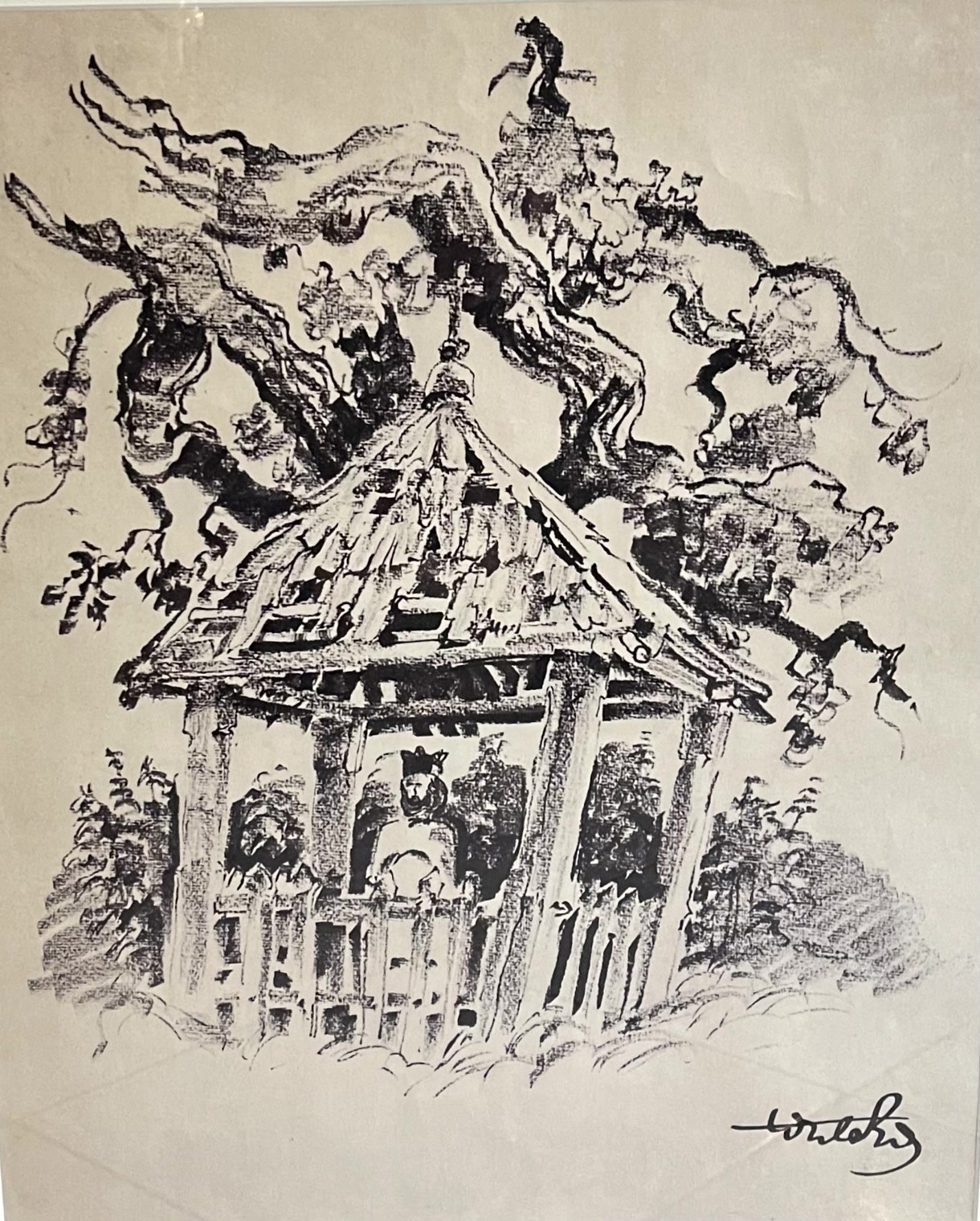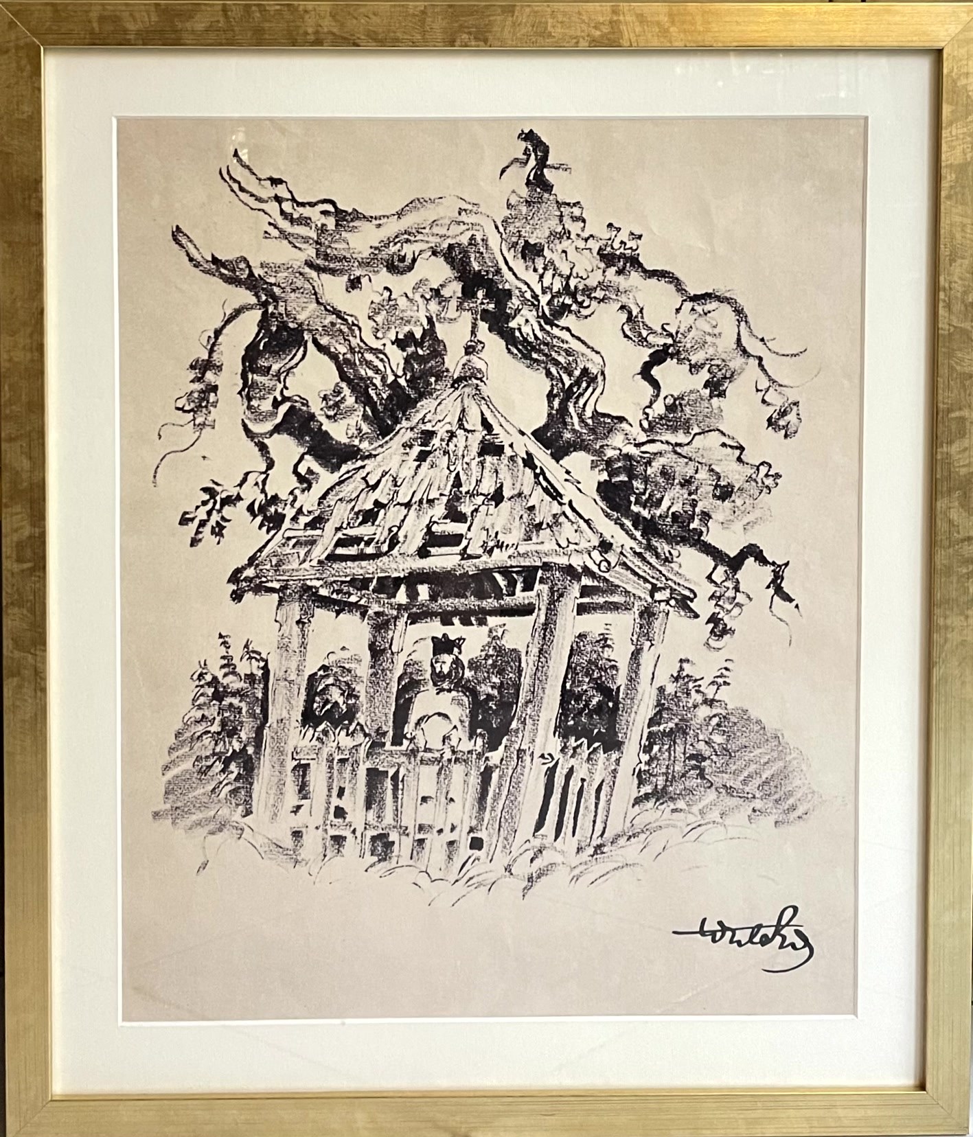 Wiktor Zin (1925 - 2007) to architekt, konserwator, znawca i miłośnik polskiej architektury i popularyzator tematów z nią związanych. Znany jest i pamiętany ze swych fascynujących programów telewizyjnych "Piórkiem i węglem", w których w trakcie gawędy o polskim krajobrazie wykonywał równolegle ilustracje do omawianego tekstu. Jego styl, zwłaszcza monochromatycznych prac rysowanych węglem, jest rozpoznawalny na pierwszy rzut oka. Popularność programu i rysunków autora spowodowała wydanie ich w formie czarno-białych litografii, których przydrożna kapliczka pod dębem z figurką św. Jana Nepomucena jest doskonałym przykładem.
