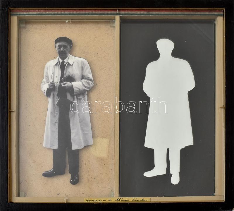 Zoltán Sándor (szül. Balássy Zoltán, 1943-2015): Hommage á Márai Sándor II. Vegyes technika, kollázs, dobozmű, jelzett a hátoldalán, üvegezett fakeretben. 34x35,5x4 cm / mixed technique and collage in a box, signed on the reverse