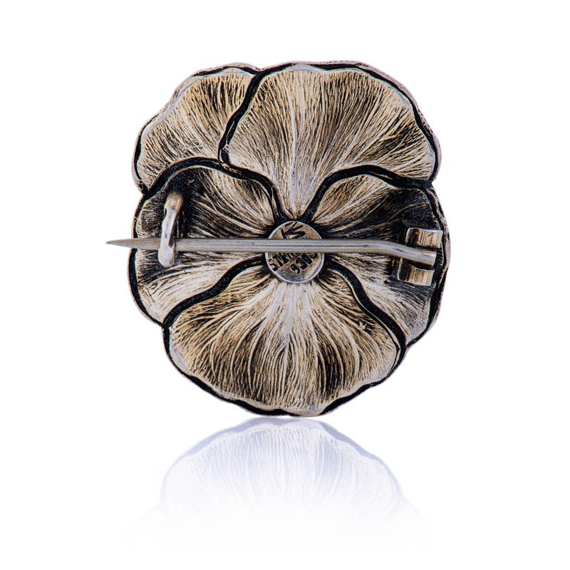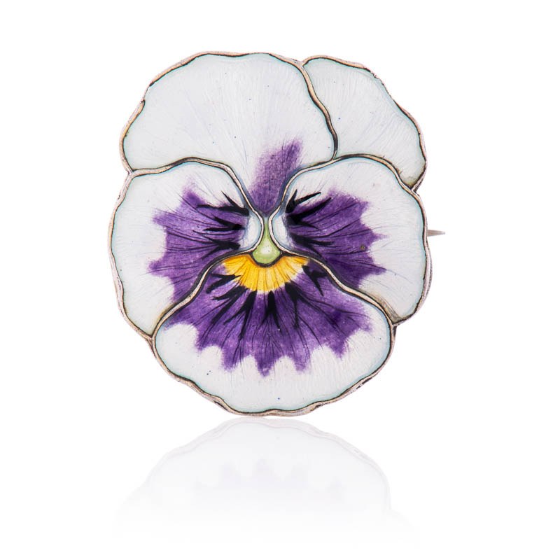 srebro, emalia wielobarwna na giloszu, masa: 4,48 g; wym.: 2,7 x 2,4 cm