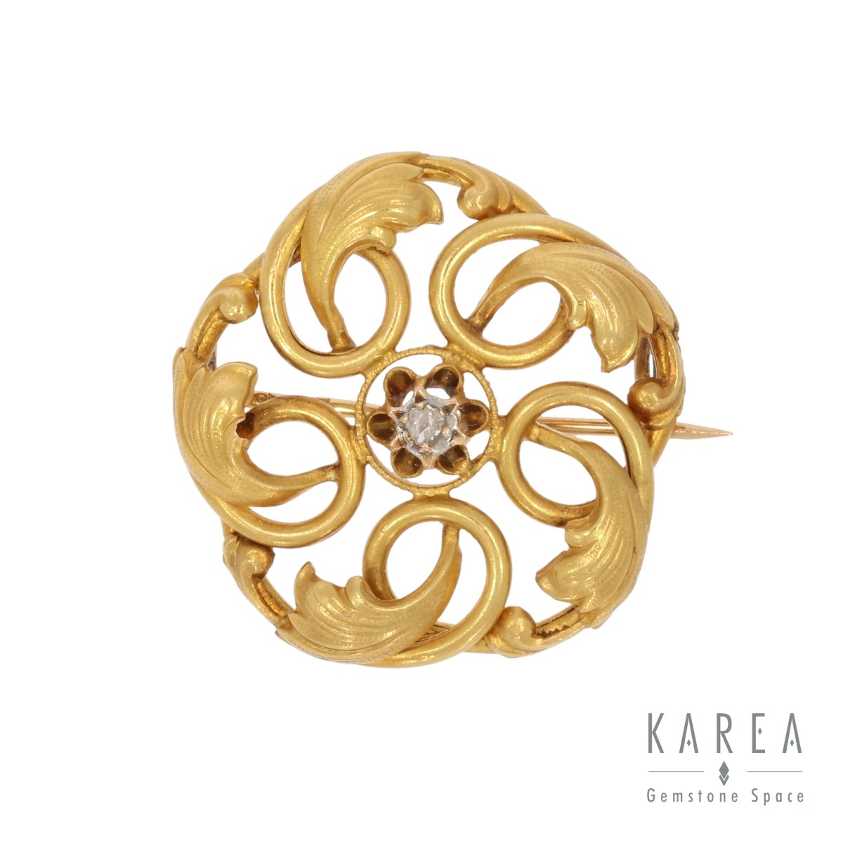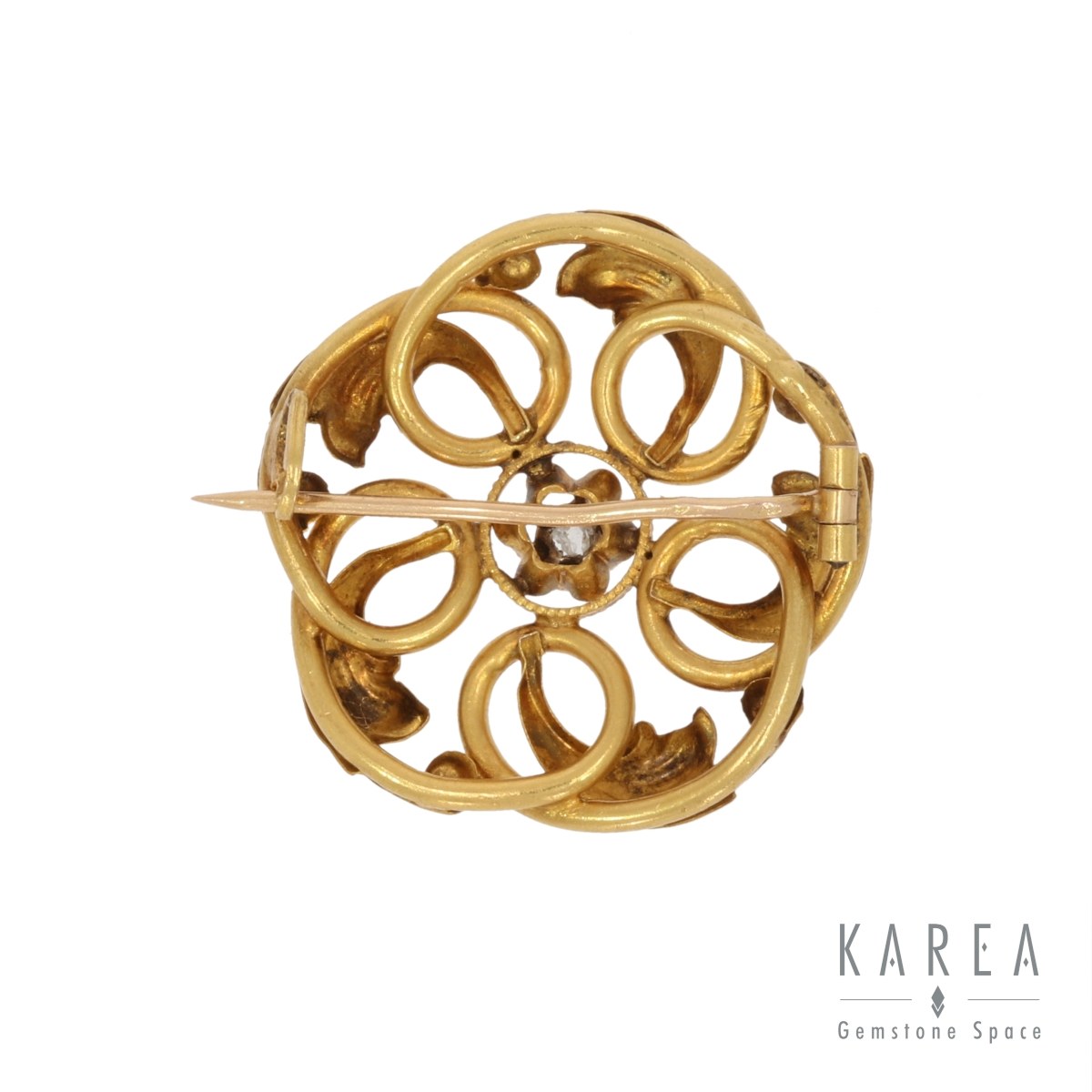 złoto pr. 0,750, 1 rozeta diamentowa, średnica: 2,4 cm, masa: 3,32 g