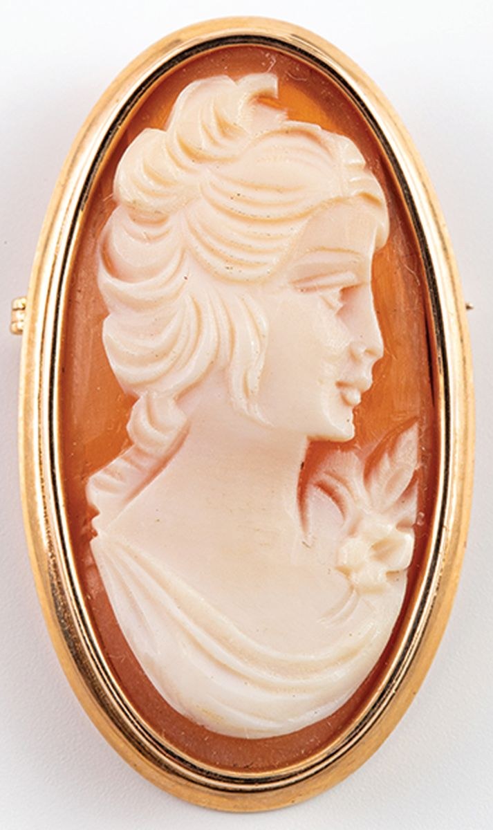 Złoto, próba 583, muszla, waga całk. 5,24 g, 32 x 19 mm Puncowanie: W 583, głowa rycerza; MP