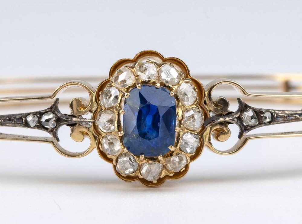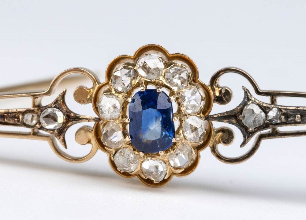 Bracelet sapphire approx. 1.50 ct. Brooch sapphire approx. 0.60 ct.