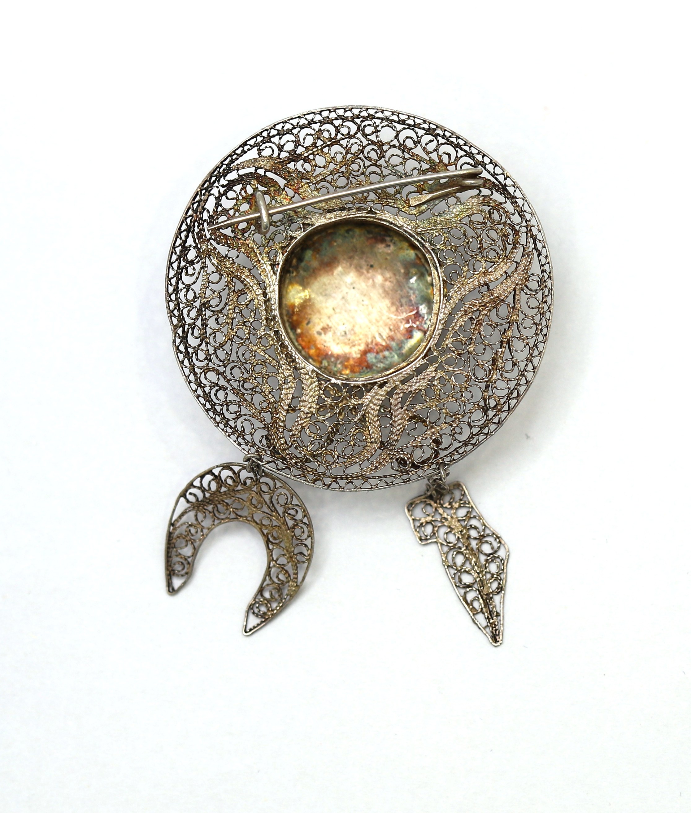 Ciekawa brosza autorska z porcelanowym środkiem.
