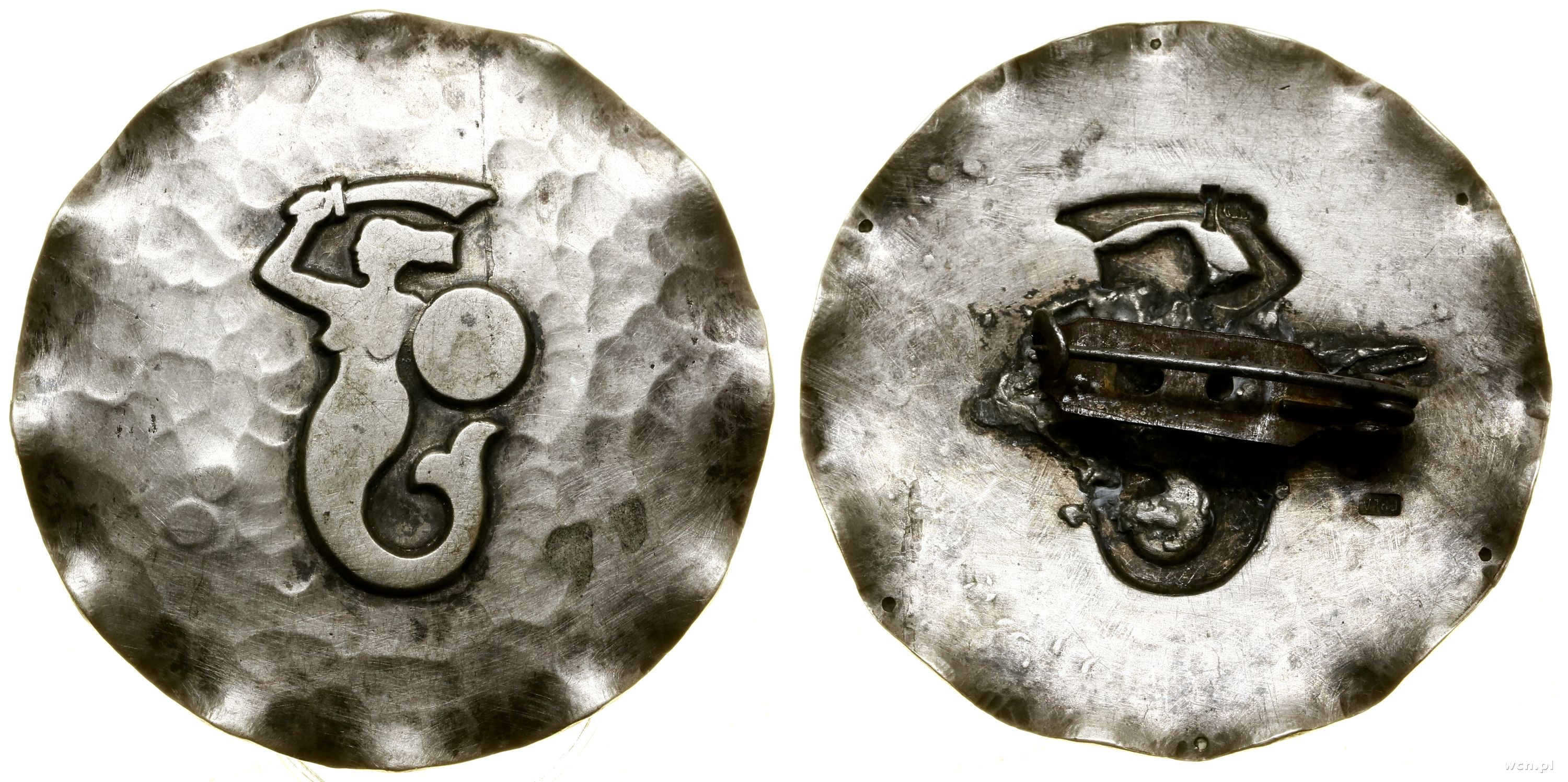 Warszawska Syrena, na stronie odwrotnej punca srebra i punca CPLA, wtórnie przylutowana stalowa agrafka