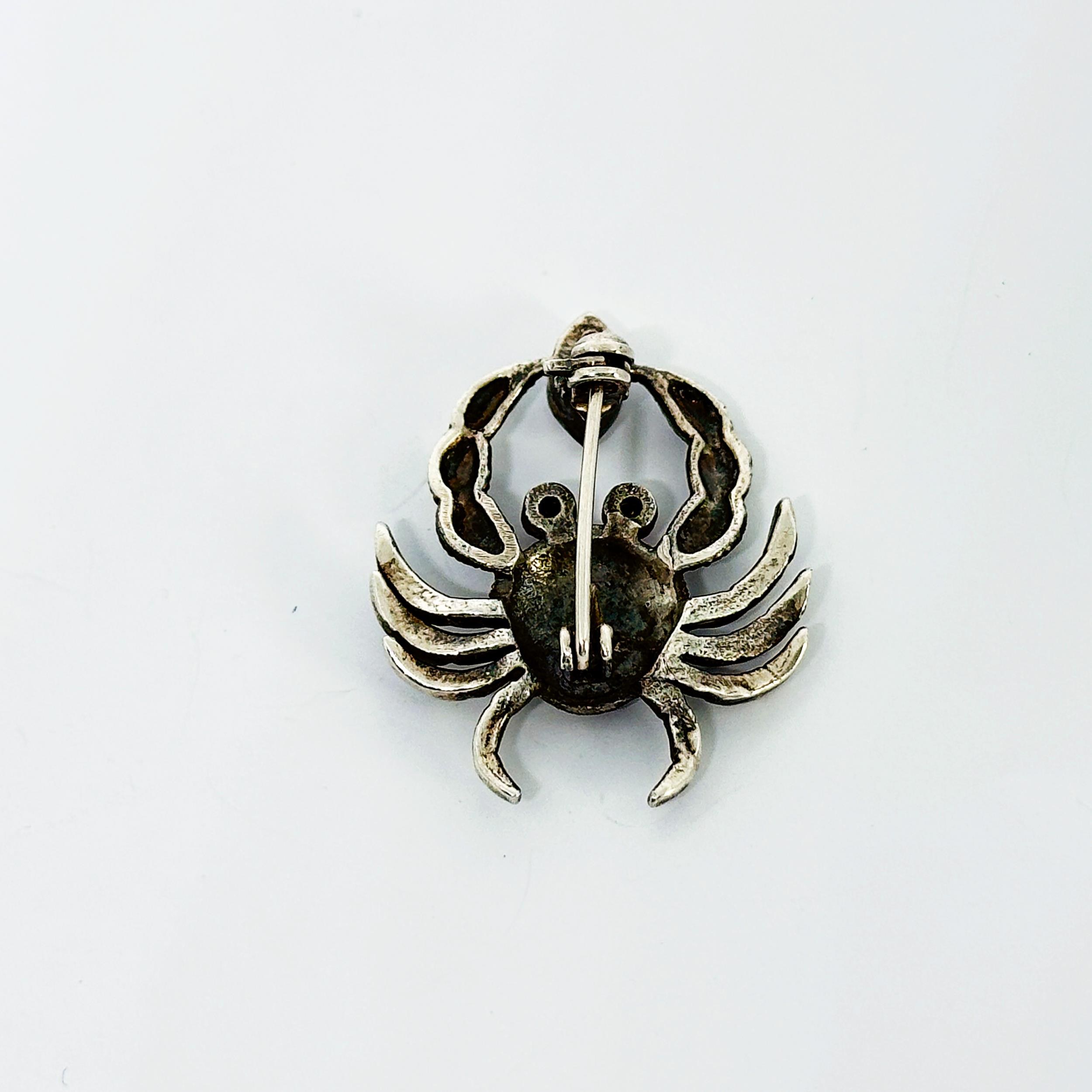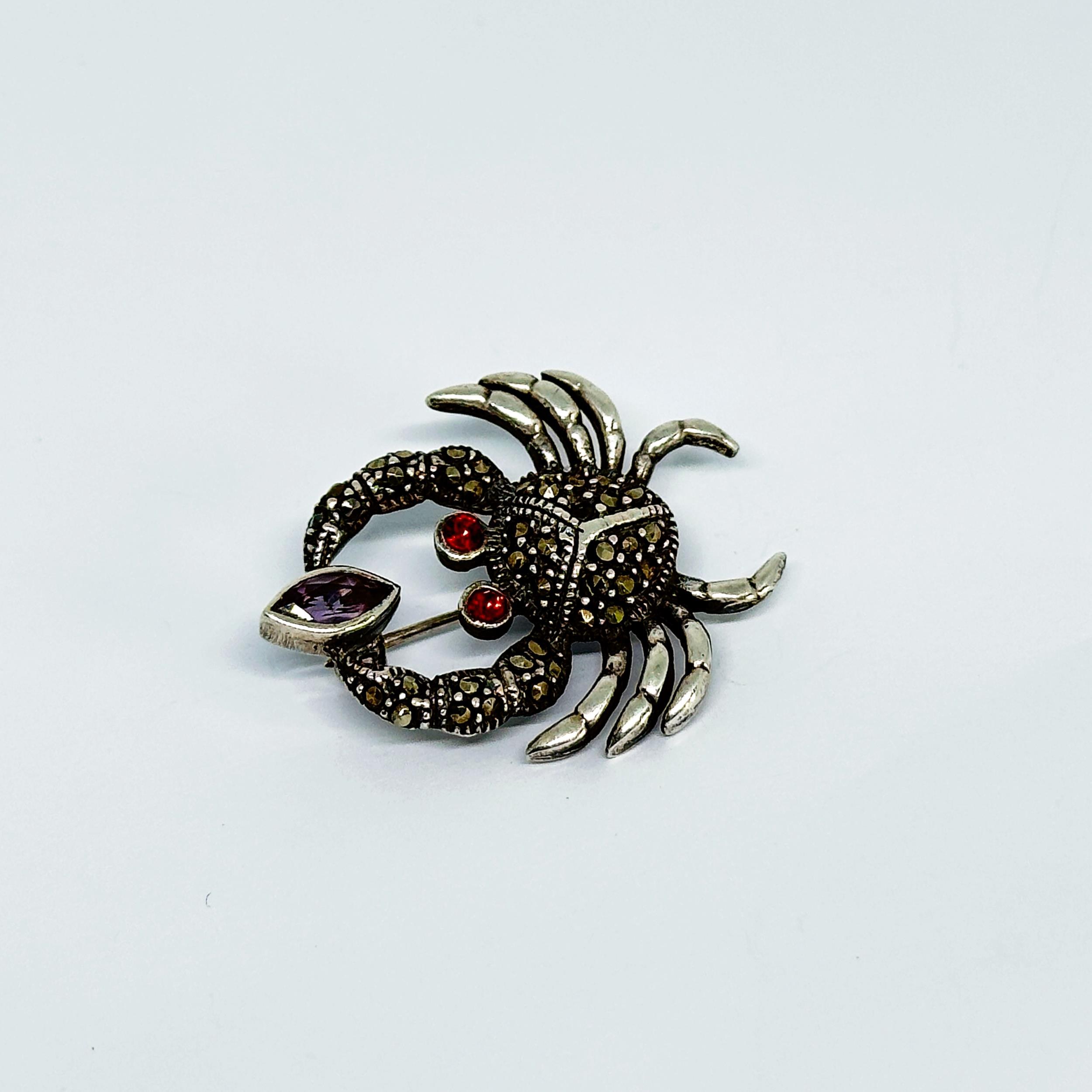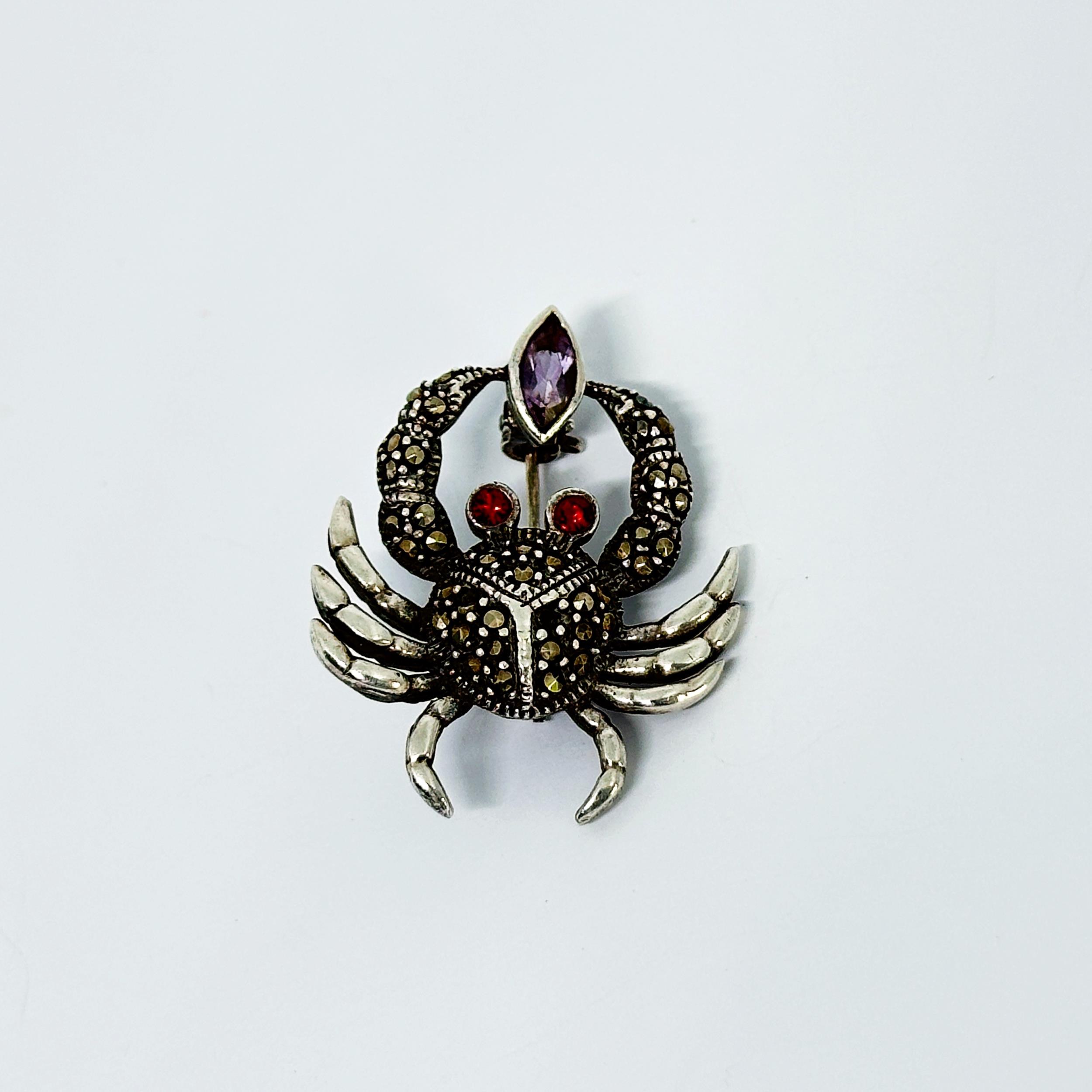 Srebrna broszka w formie Kraba z Ametystem i Markazytami