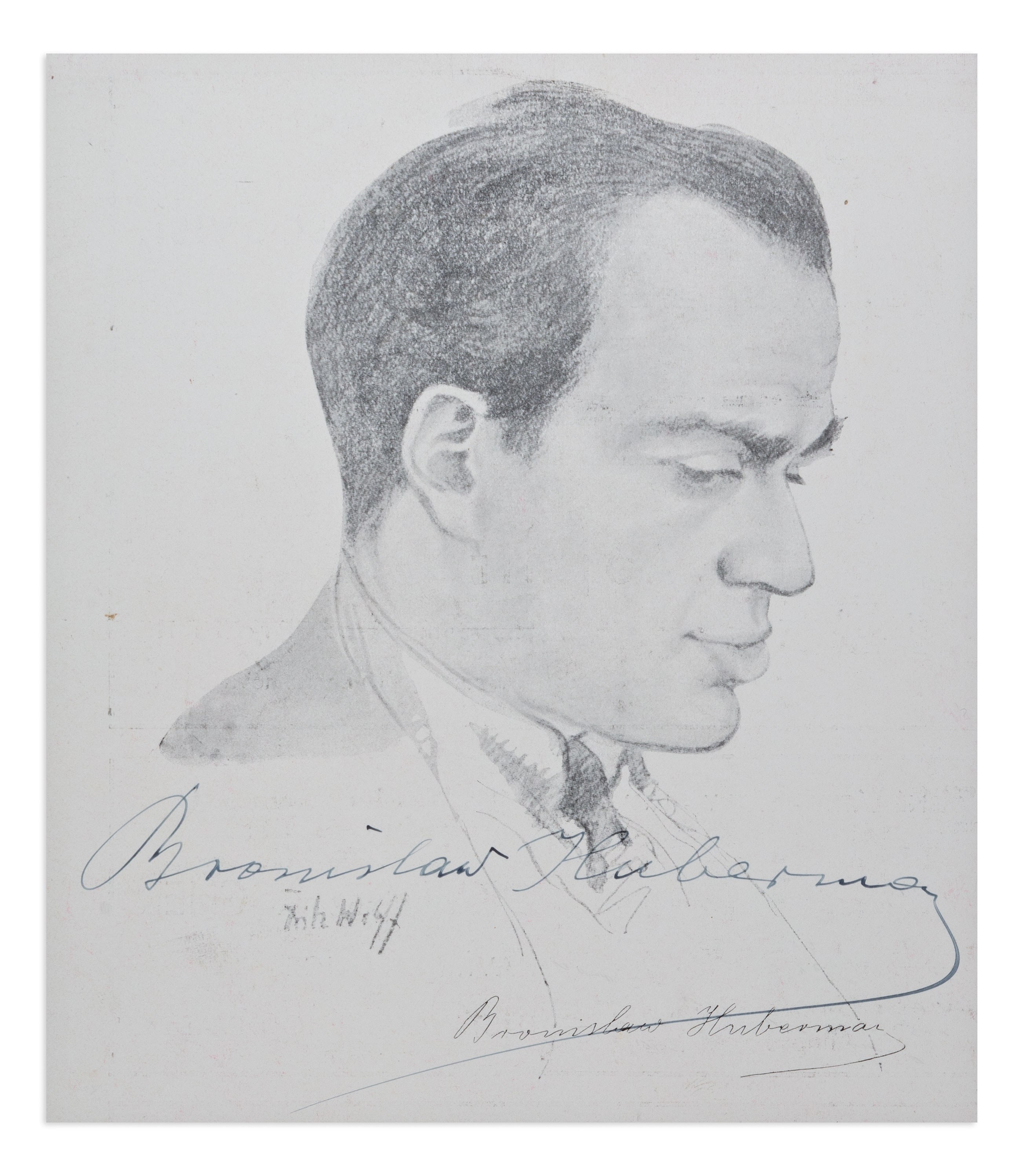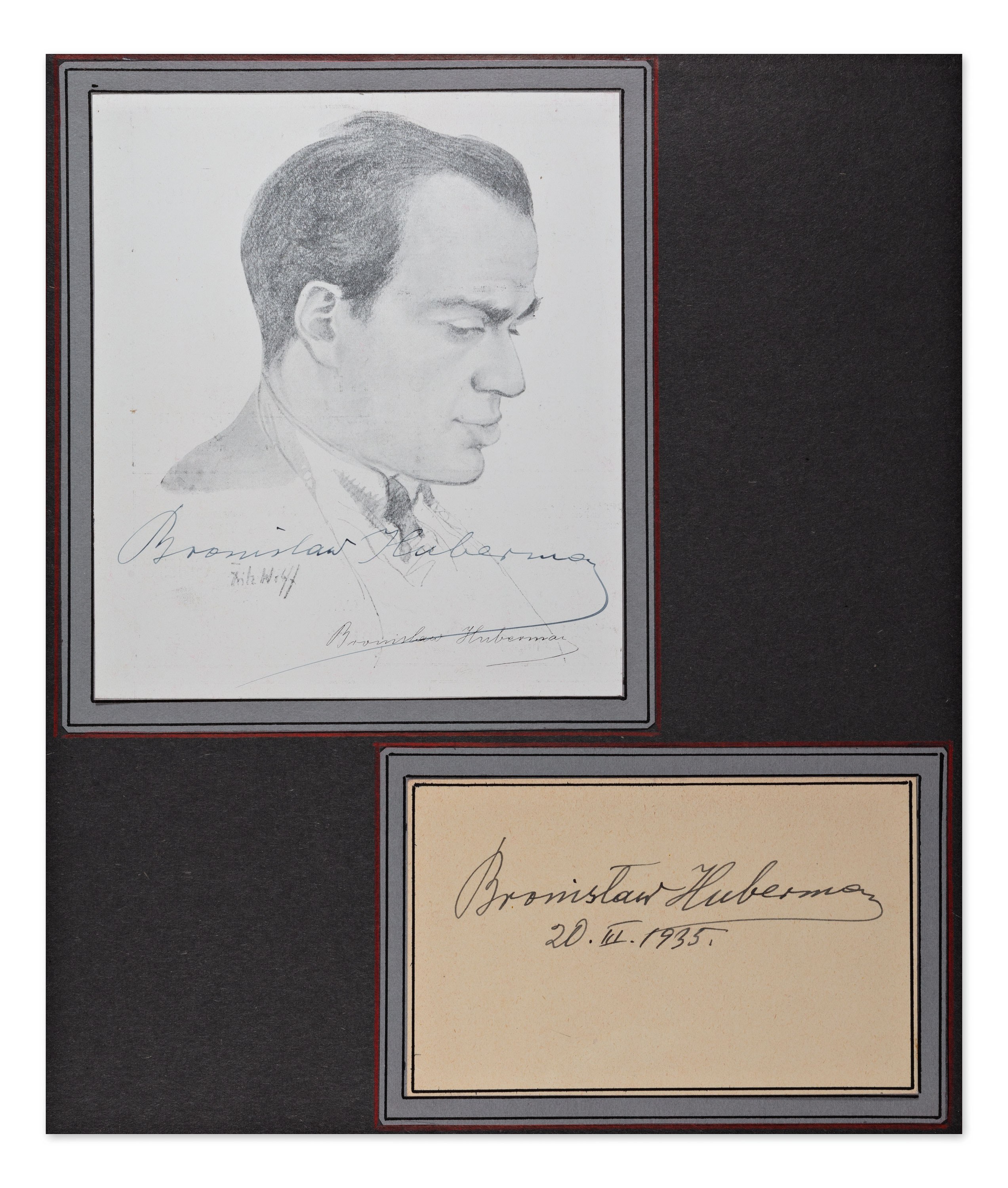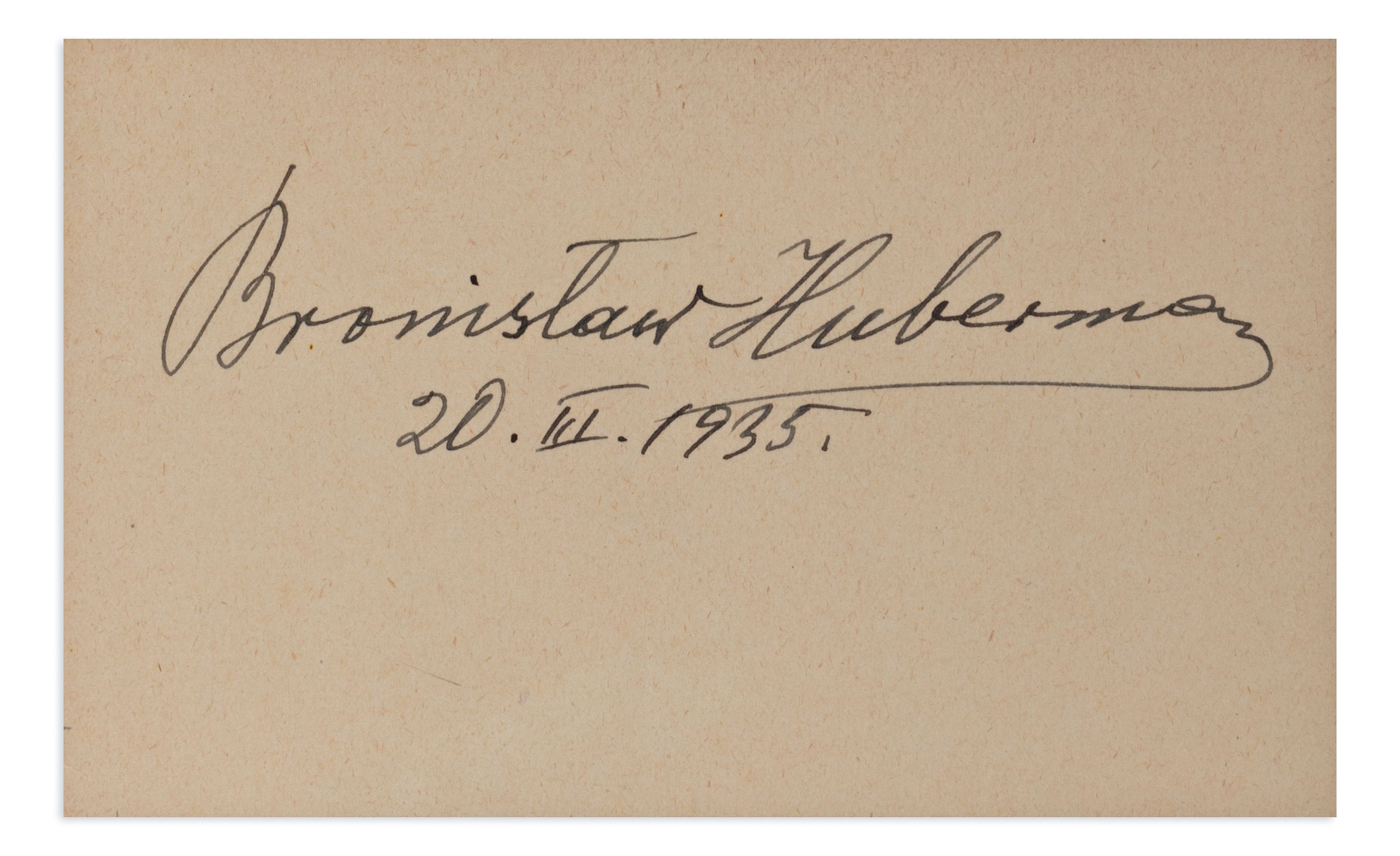 Collection contains two original signatures of the Polish violinist and pedagogue Bronisław Huberman, one of the most prominent Polish violinists of the 20th century. The signatures are made on a newspaper clipping and a separate sheet of paper, dated February 20, 1935.Bronisław Huberman was a musical prodigy of his time, known not only for his masterful interpretative style but also as the founder of the Palestine Symphony Orchestra, the precursor to today's Israel Philharmonic Orchestra. His violin playing was admired worldwide, and he collaborated with the greatest musicians of his time.