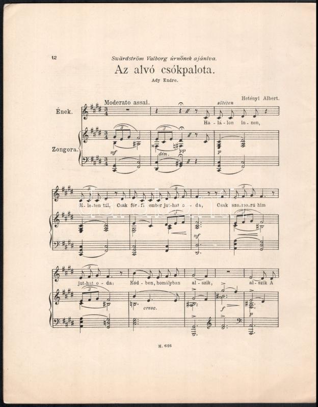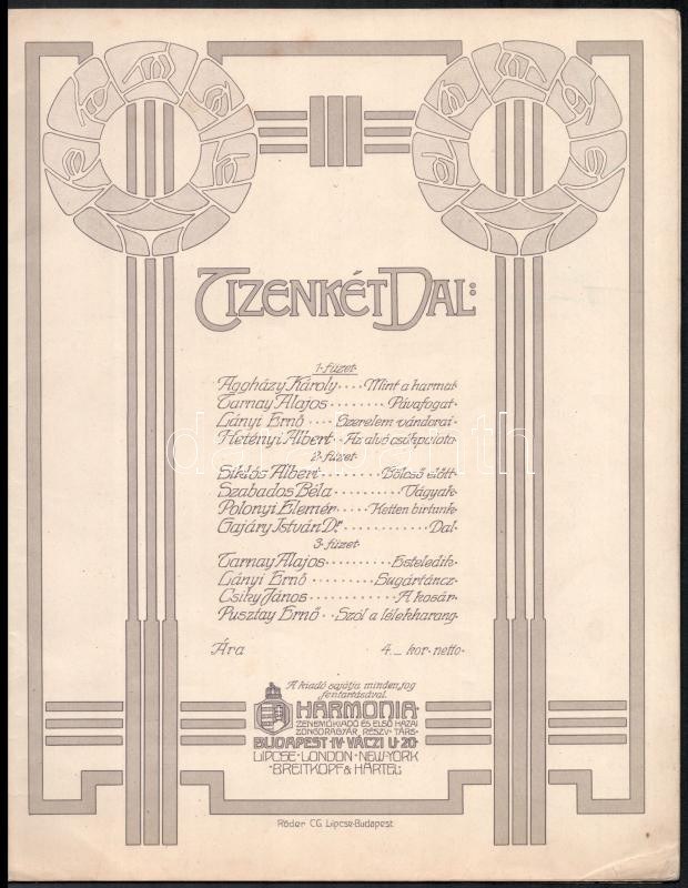 cca 1910-1920 Tizenkét Dal - kottafüzet, benne Ady Endre korai versmegzenésítése, szakadással