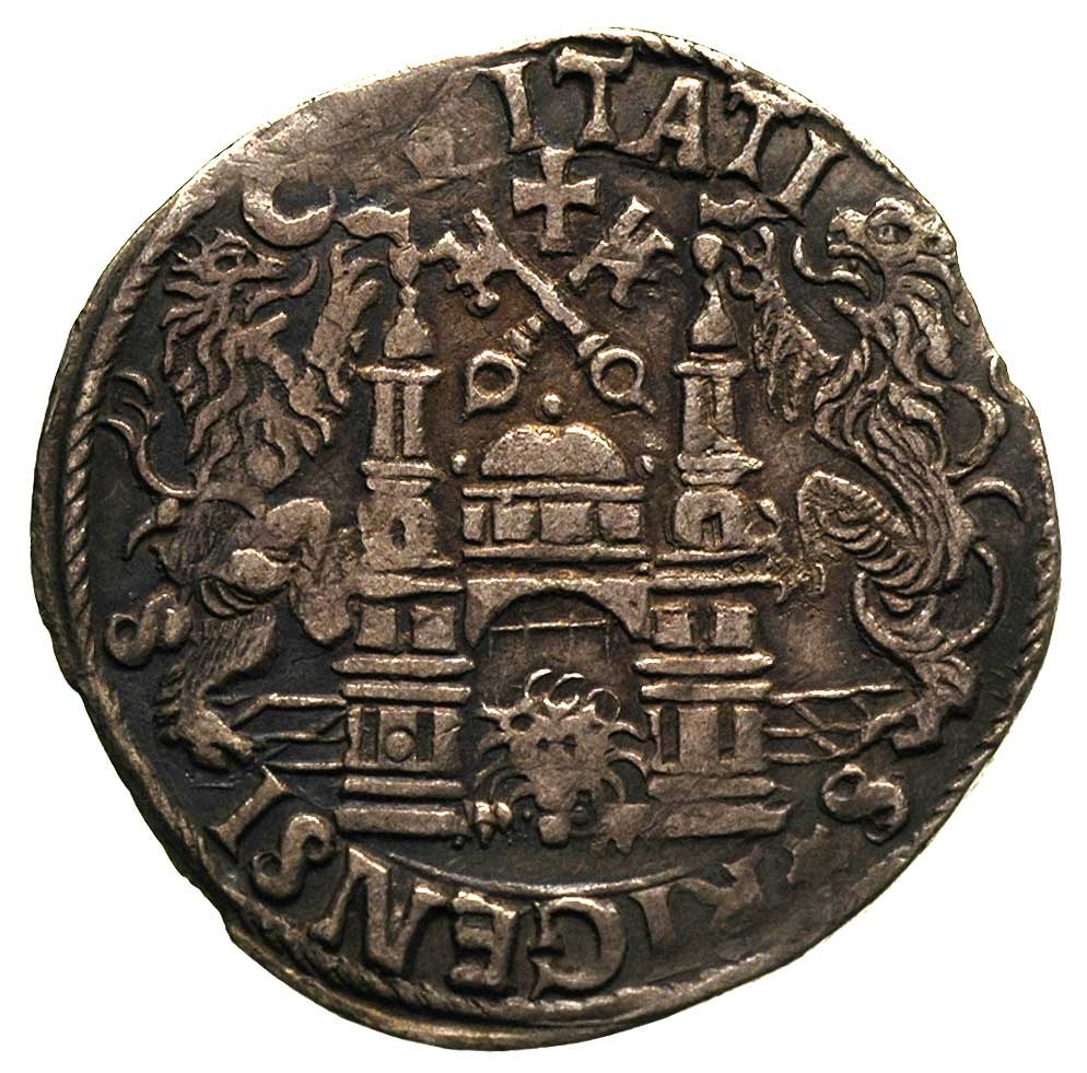 RYGA -miasto, 1/2 marki 1565, Ryga, Neumann 420, Fed. 585, rzadka moneta, patyna