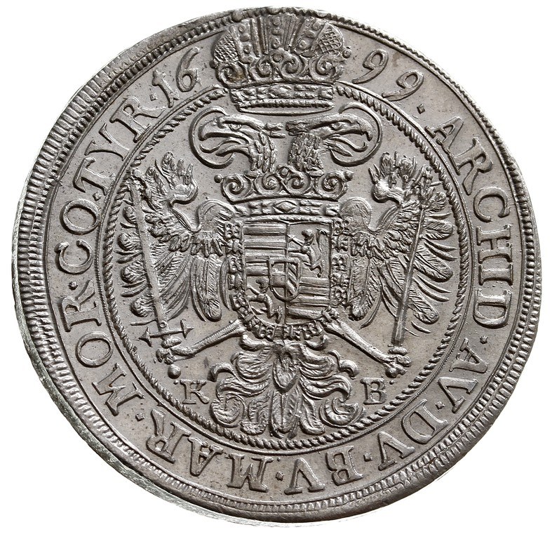Leopold I 1657-1705, 1/2 talara 1699, Krzemnica, srebro 14.44 g, Her. 849, Huszar 1402, piękny egzemplarz