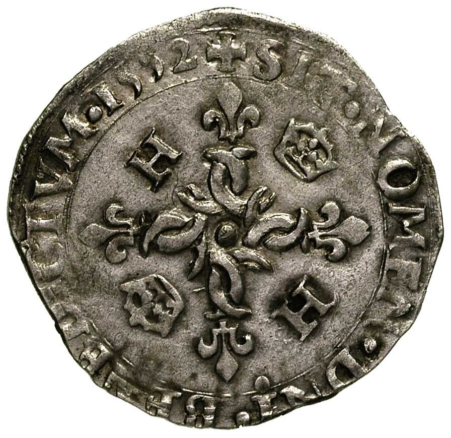 Henryk II 1547-1559, 1/8 ecu 1552, Rennes, Duplessy 997