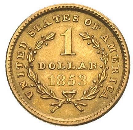 1 dolar 1853, Filadelfia, Fr. 84, złoto, 1.64 g, rzadki