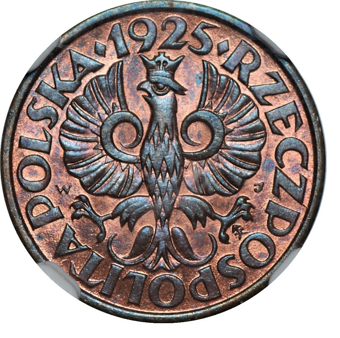 Zdjęcie zrobione przez slab w którym moneta się znajduje.