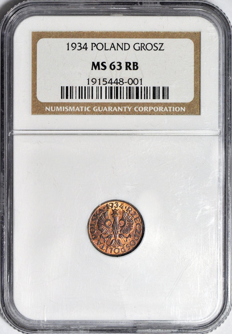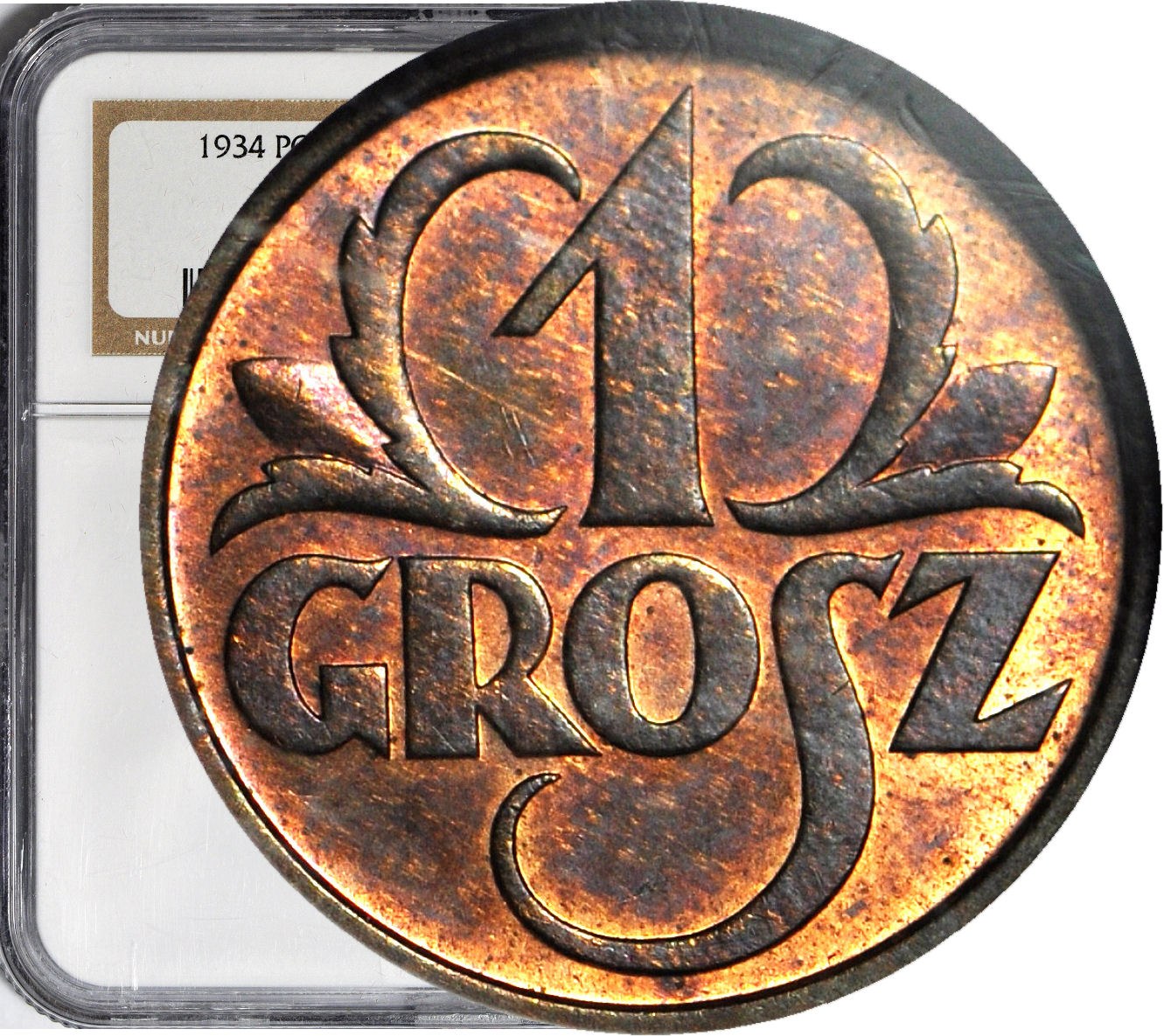 Menniczy egzemplarz, mocny połysk, czerwonobrązowy kolor. Stary slab NGC. Konserwatywny grading sprzed ponad 20 lat.