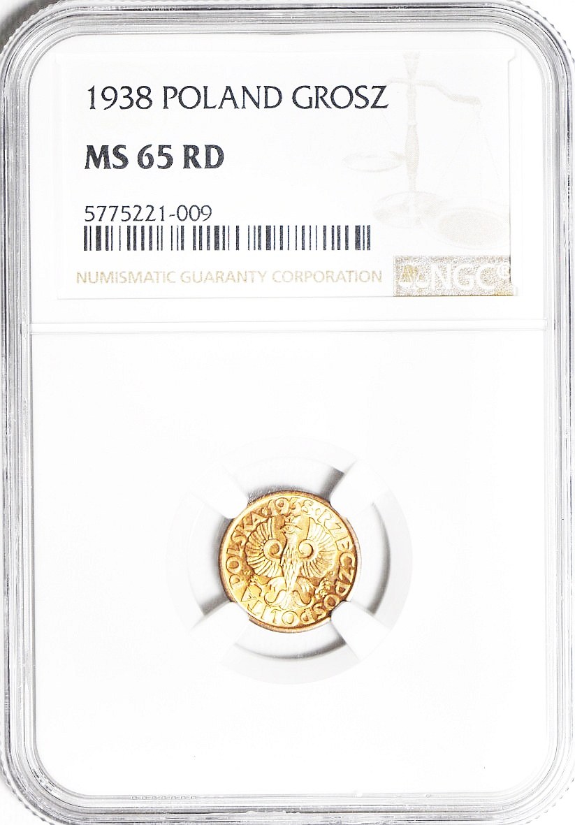 1 grosz 1938, menniczy, kolor RD