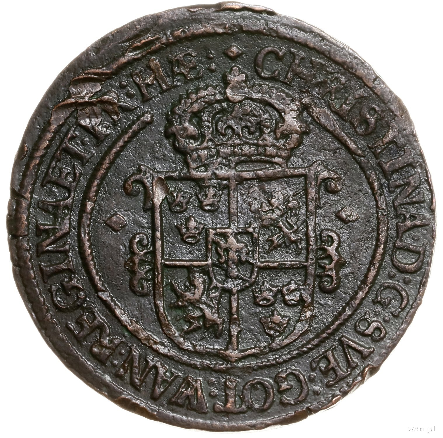Krystyna (1632–1654), 1 öre, 1645, mennica Avesta; SM 110; miedź, 49.88 g; ciemna patyna, przyzwoicie zachowana moneta.