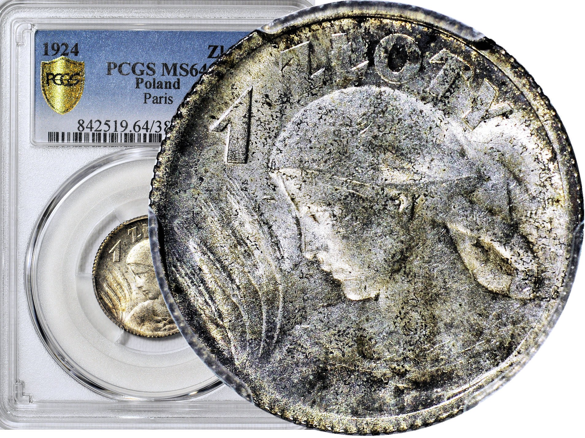 Ekstremalnie wysoka i w pełni zasłużona nota, najwyższa na świecie patrząc zarówno na NGC jak i PCGS .Moneta o powalającej urodzie oraz nocie gradingowej. Jeden z najładniejszych znanych egzemplarzy. Wyśmienity menniczy egzemplarz, mocny połysk z tzw. "meszkiem" na całej powierzchni, perfekcyjnie piękne, gabinetowa patyna. Ze względu na płytkie bicie, monety te otrzymują niskie noty w gradingu. Moneta z 14 aukcji WDA-MiM gdzie osiągnęła cenę 9430zł